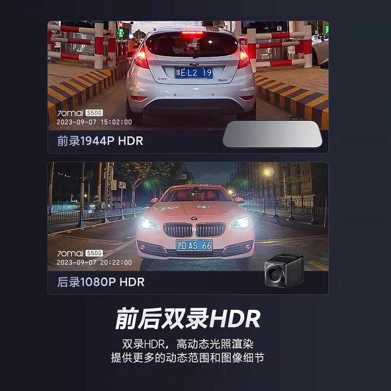 📚 70mai S500 Rearview Dash Cam Car DVR流媒体行车记录仪前后双录