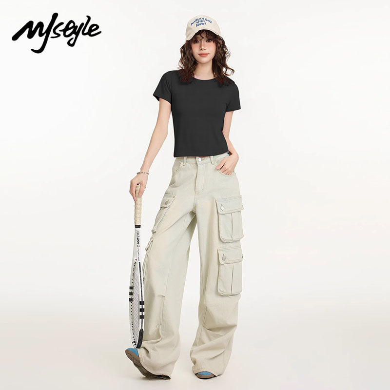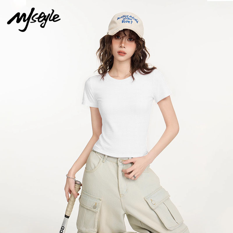 📚 MJ STYLE短袖T恤女短款修身显瘦2025夏新款纯棉紧身上衣百搭