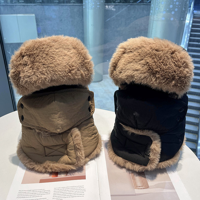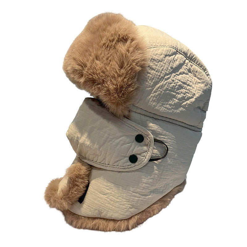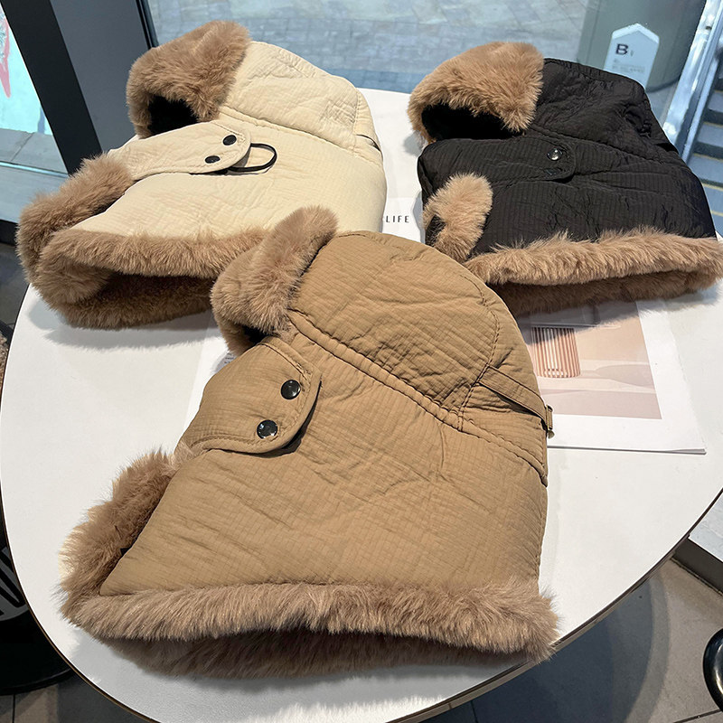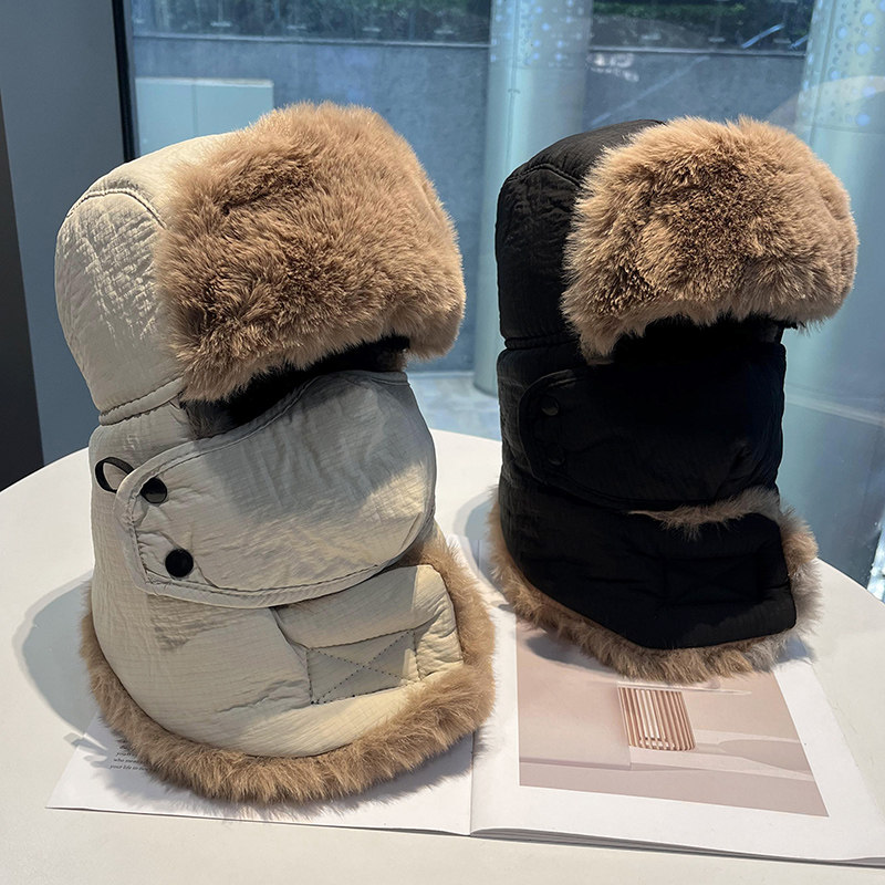 📚 冬季兔毛绒防寒雷锋帽男羽绒棉帽户外骑车防风面罩保暖护耳帽子女