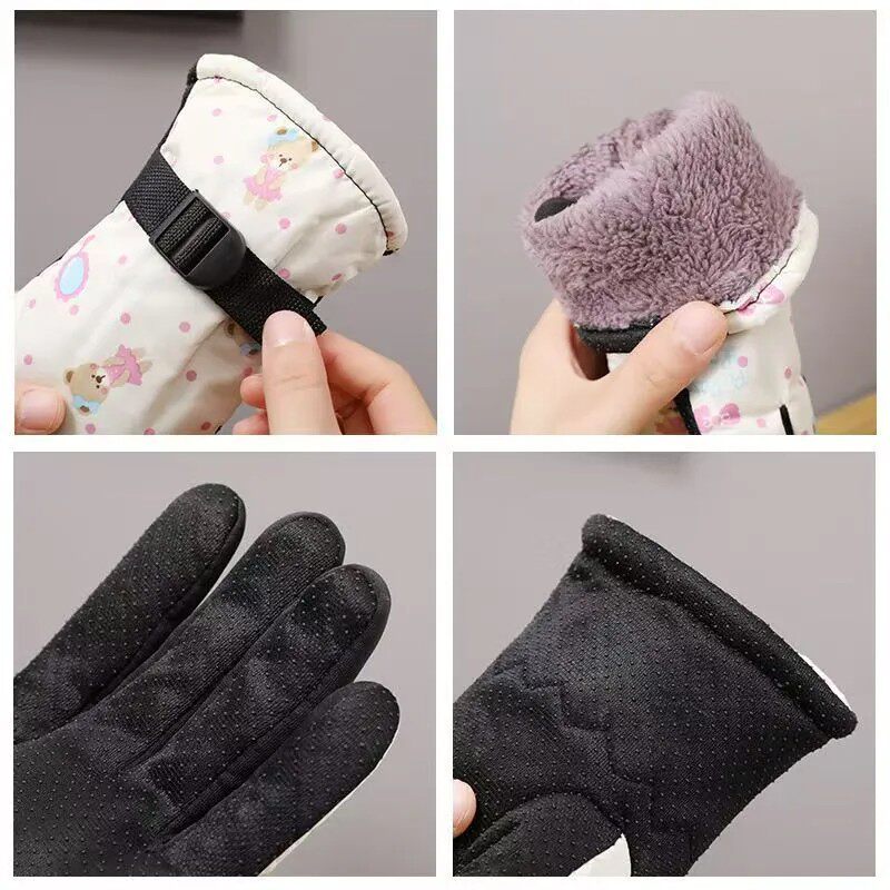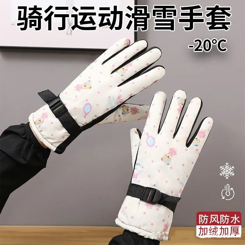📚 小熊手套加绒可爱女生冬季保暖米粉色可触屏防寒骑行运动滑雪手套