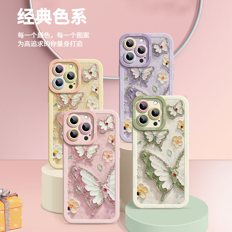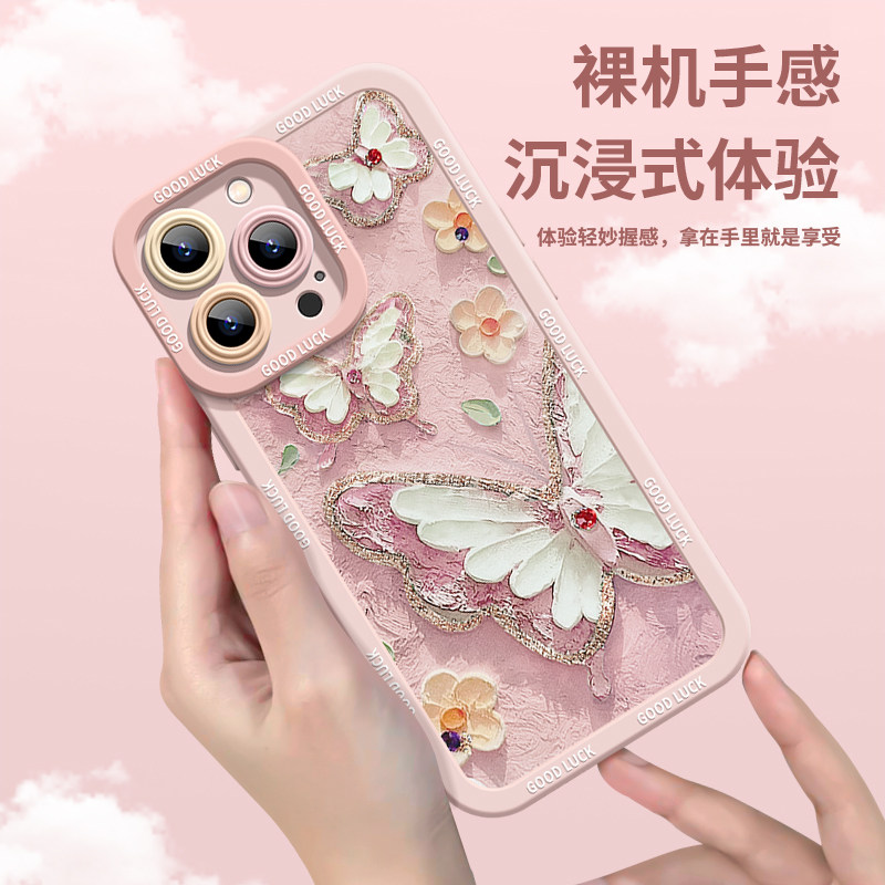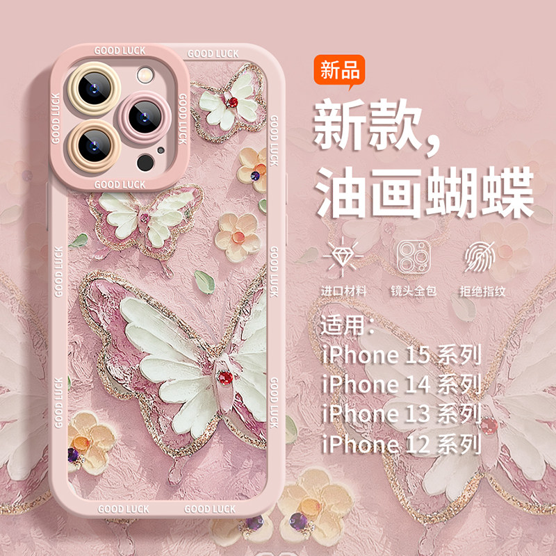 📚 【进口硅胶】适用于苹果16promax手机壳新款油画蝴蝶iphone15pro高级感镜头全包防摔16plus网红时尚ins风创意