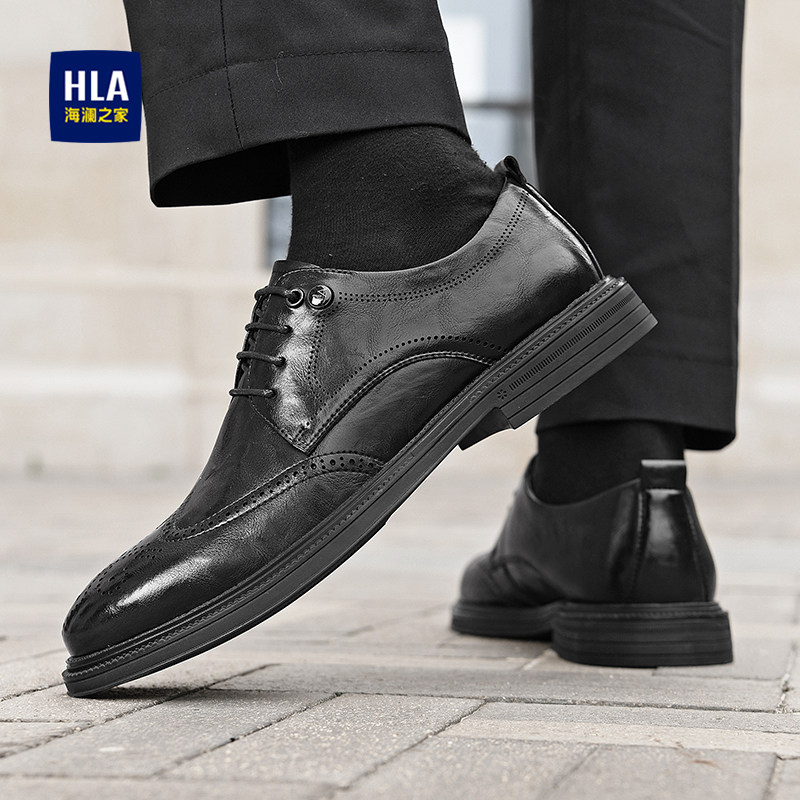 📚 海澜之家皮鞋2026新款正装商务男鞋透气增高布洛克结婚新郎父亲鞋