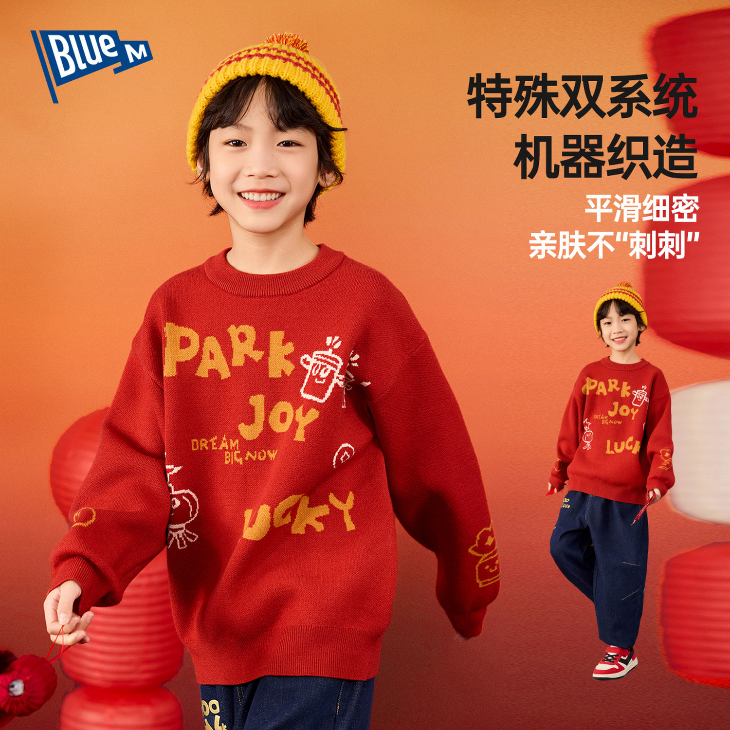 📚 儿童毛衣男童红色上衣红色秋冬男孩新年加厚大童衣服保暖女童童装
