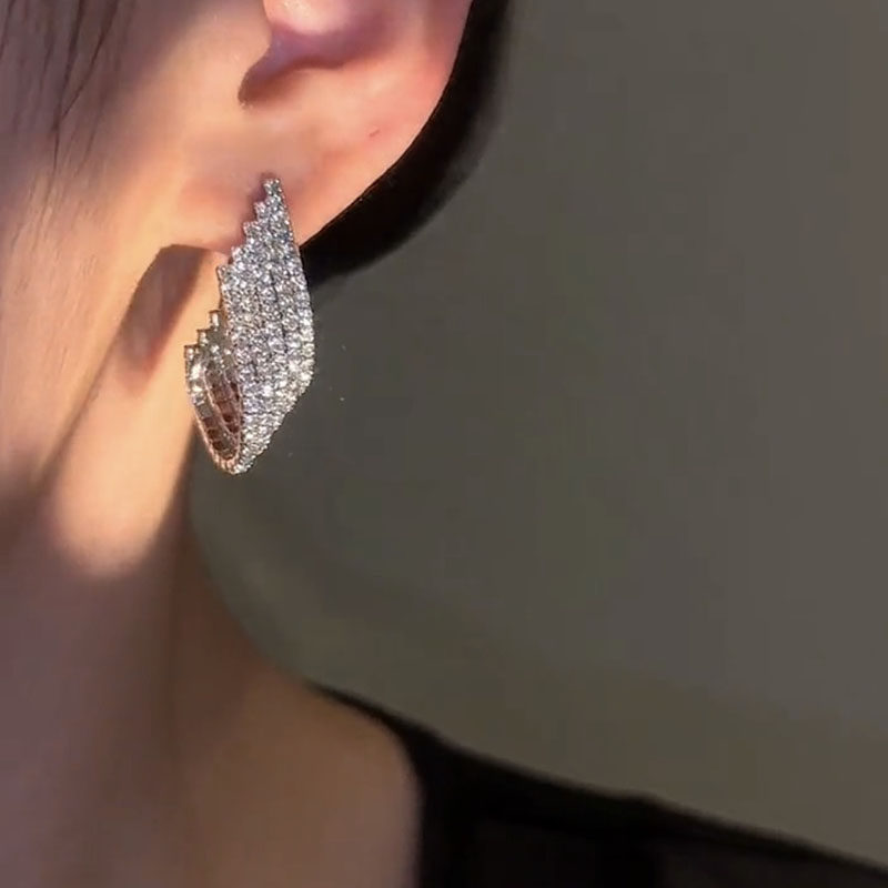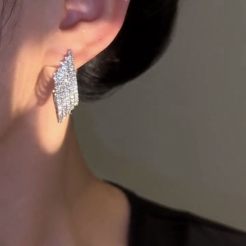 📚 超闪奢华满钻多层耳环气质百搭高级感耳钉女小众设计轻奢耳饰银针