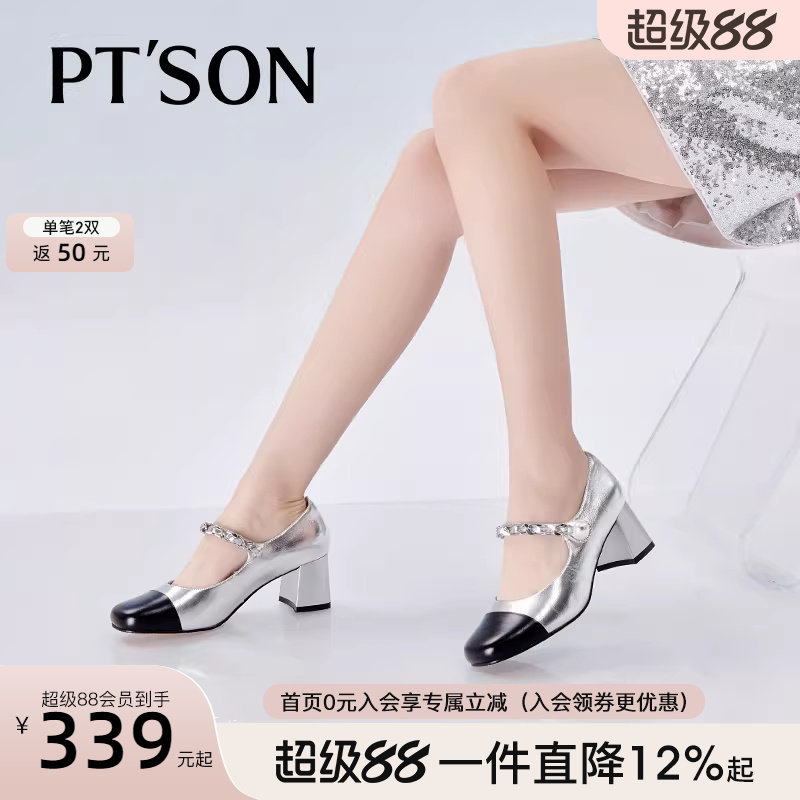 📚 百田森miu系黑白玛丽珍小香风高跟鞋女法式羊皮拼色小高跟皮鞋
