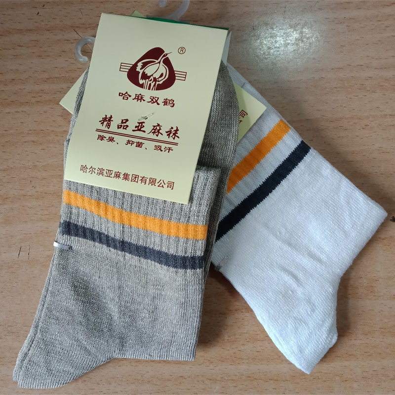 📚 加厚纯亚麻袜子男休闲运动袜户外高腰亚麻男袜子保健吸汗哈麻双鹤