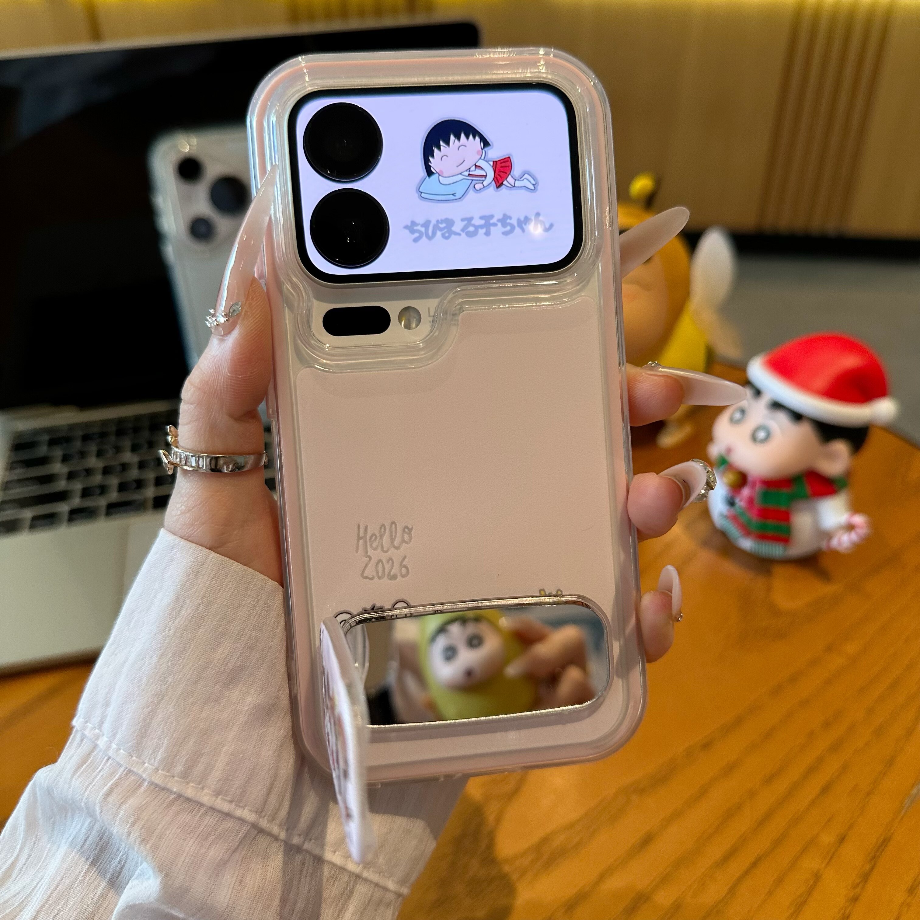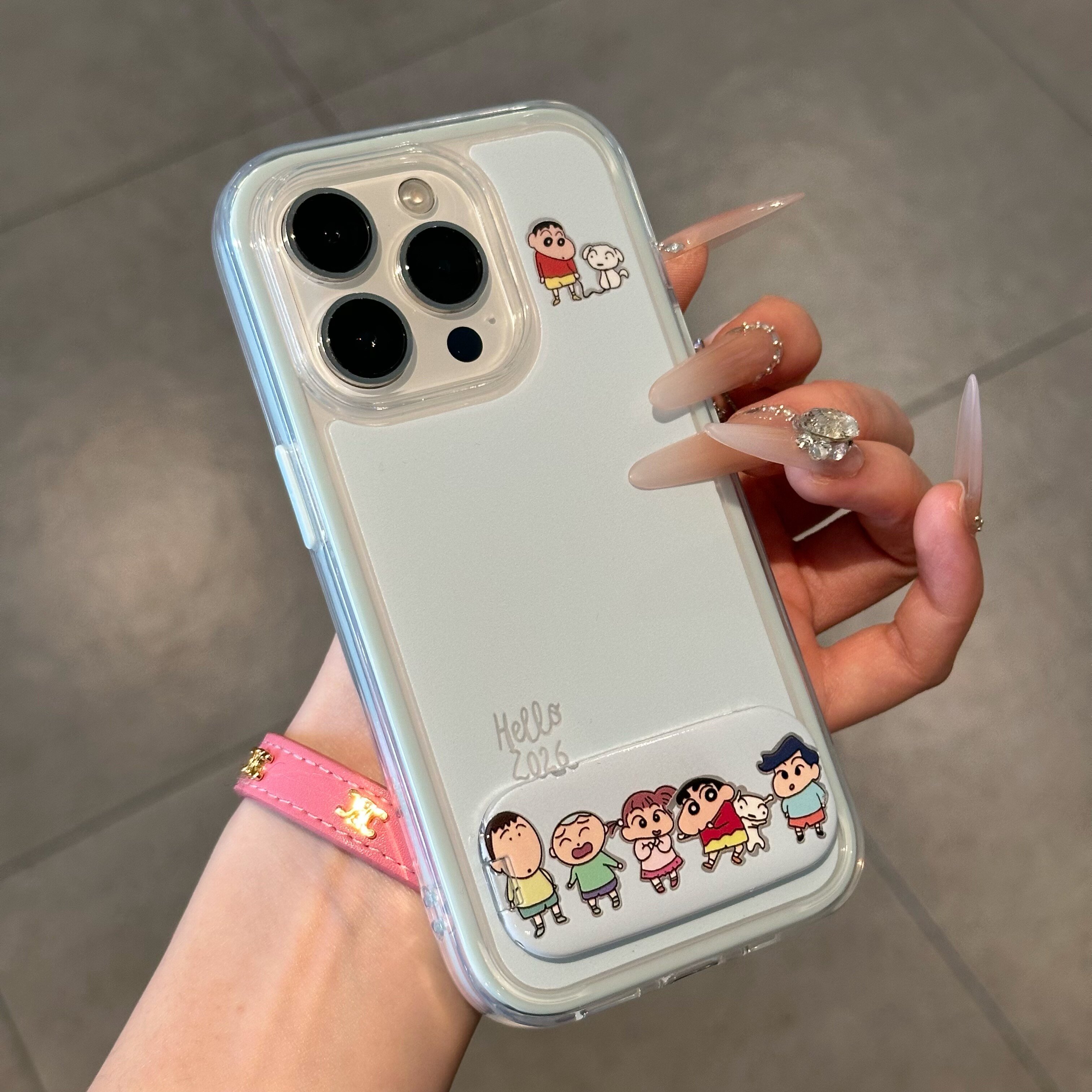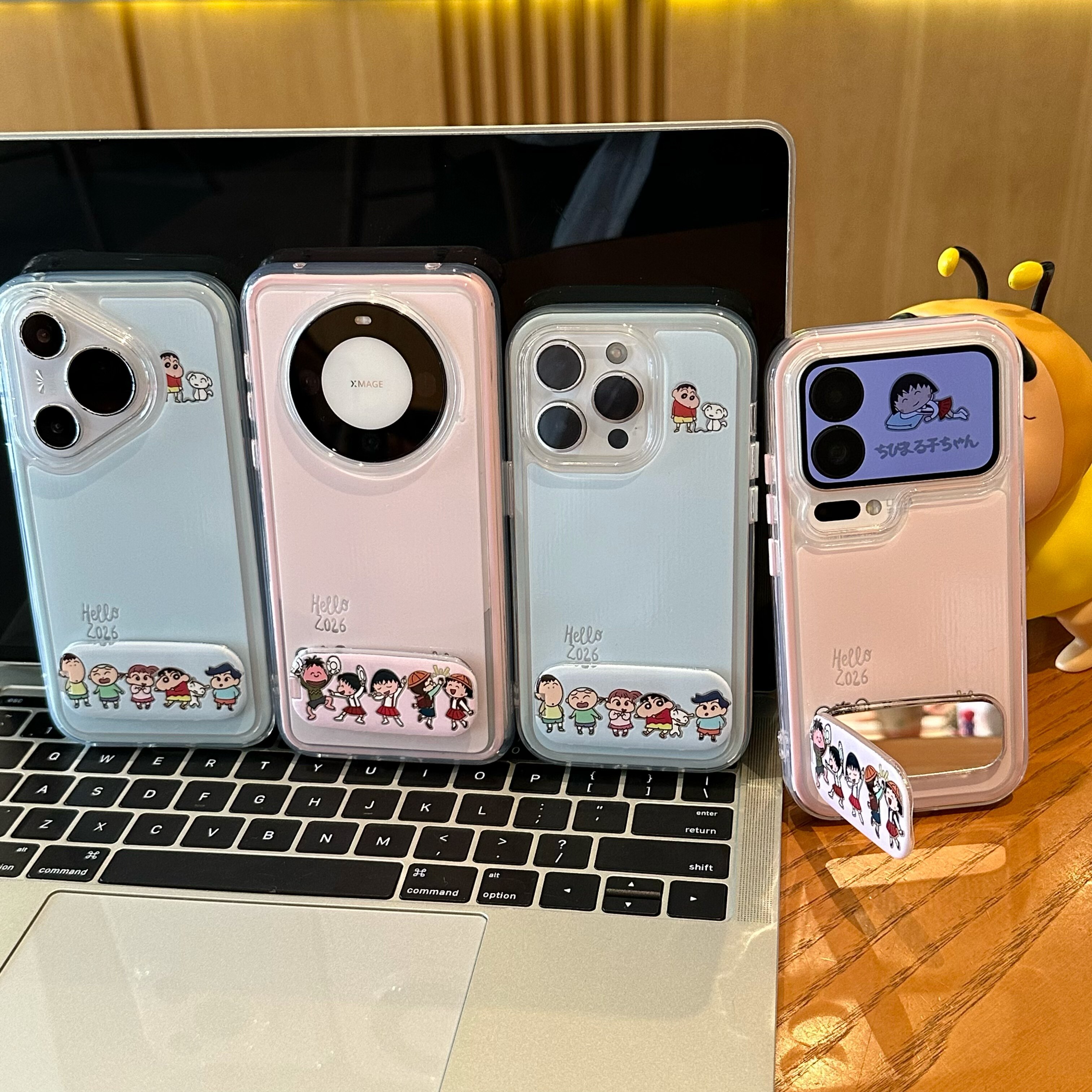 📚 可爱小新一排适用苹果17promax镜面支架手机壳16pro华为mate80新款撞色大孔vivox300小米17pro防摔荣耀500软