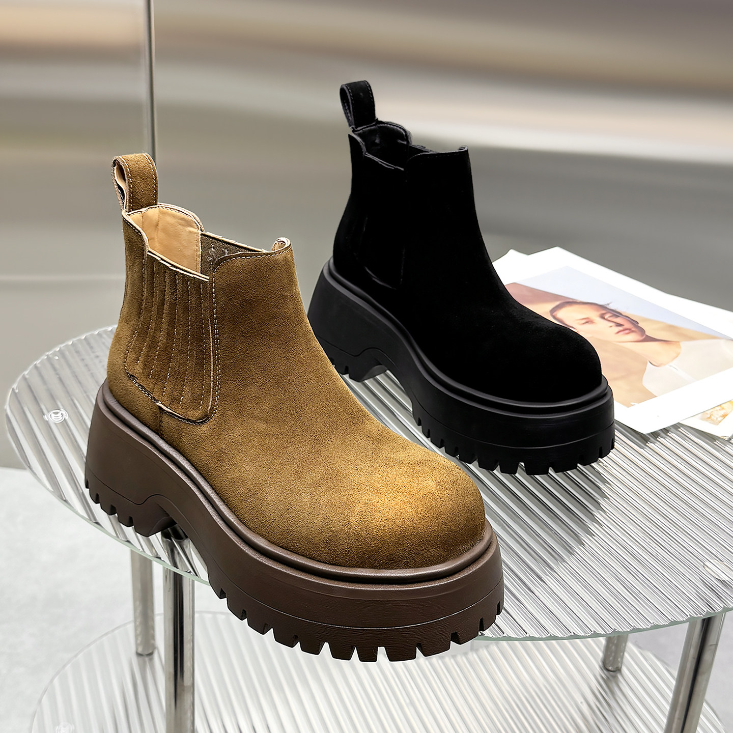 📚 半寸2025年秋冬季新款厚底增高马丁靴百搭显瘦时尚轻便粗跟休闲鞋