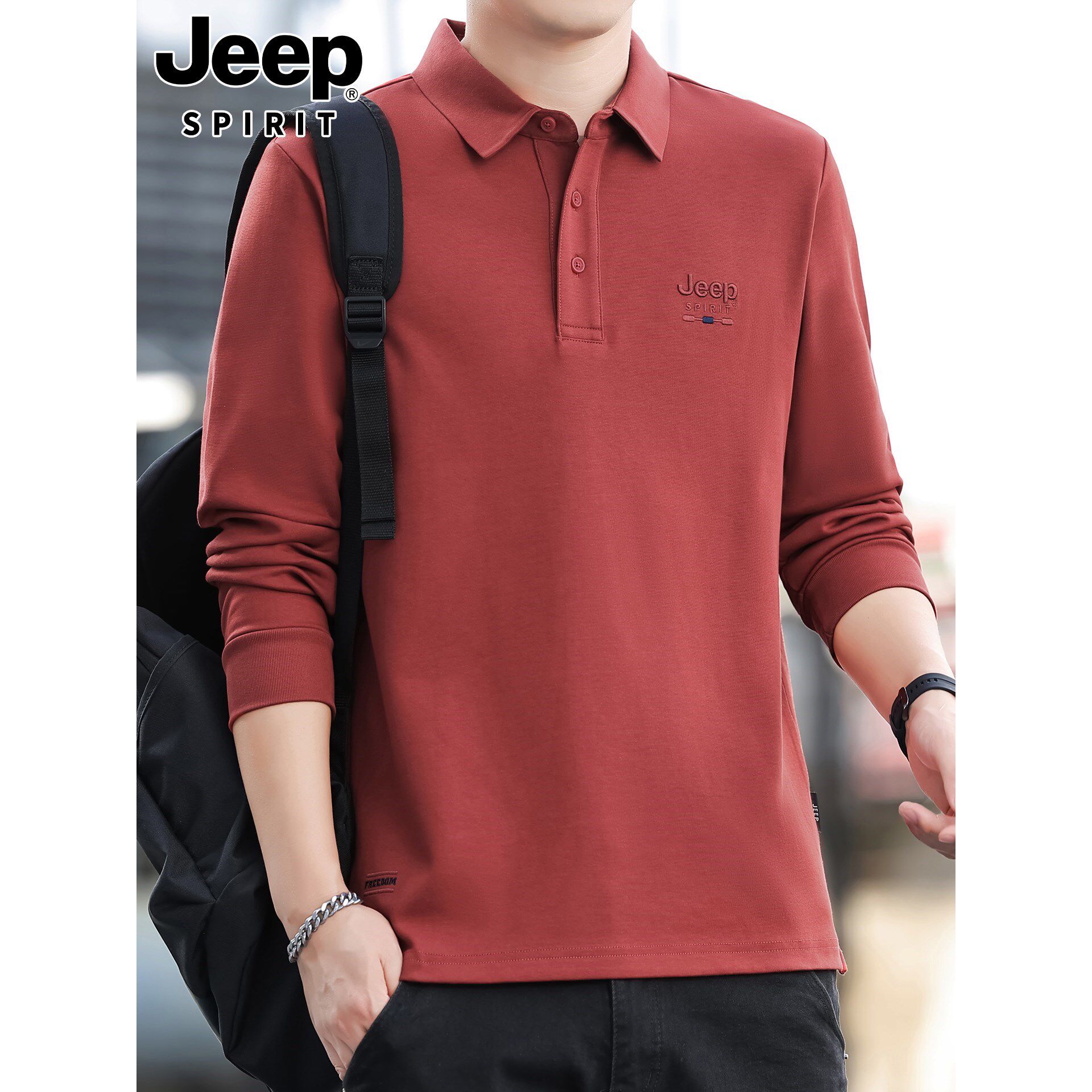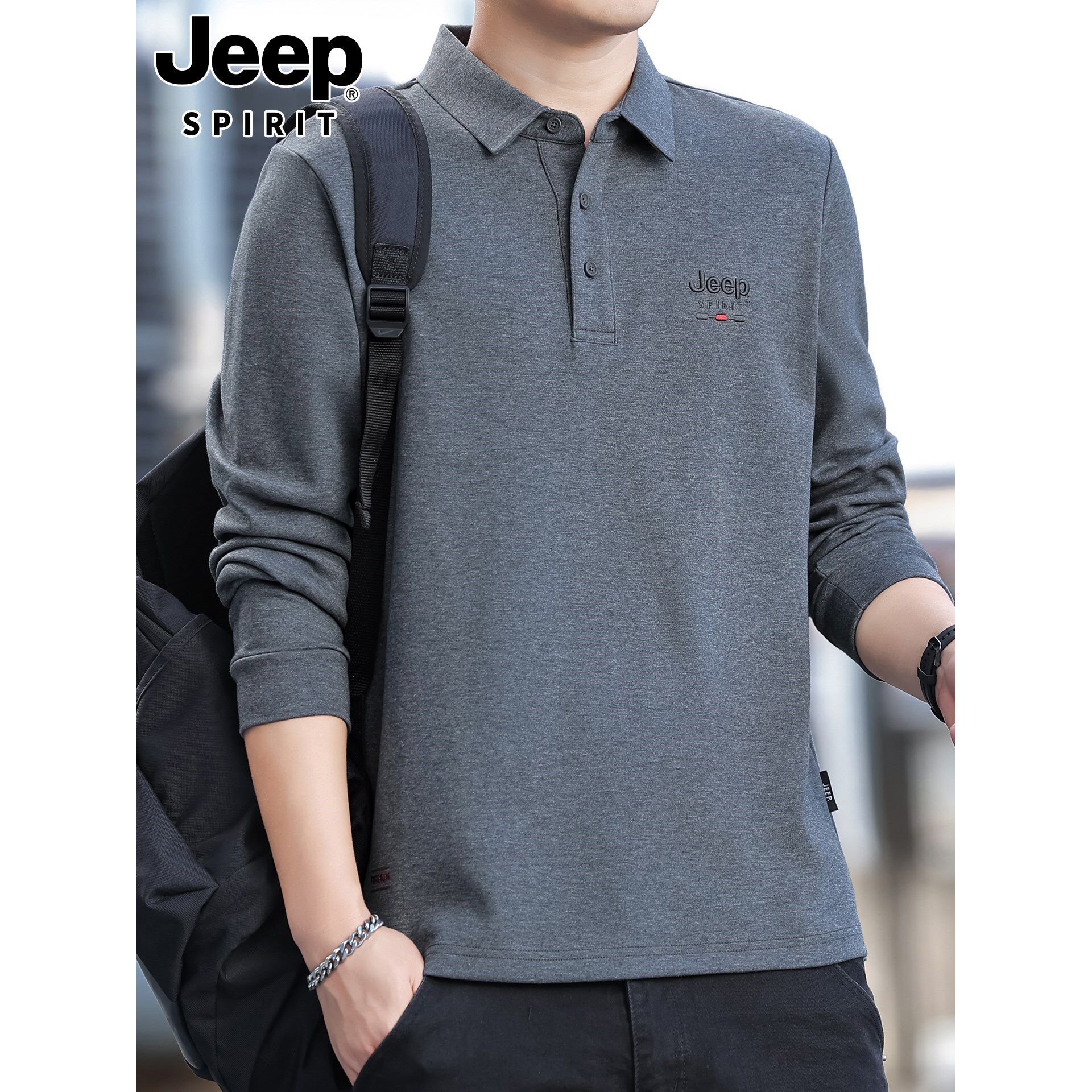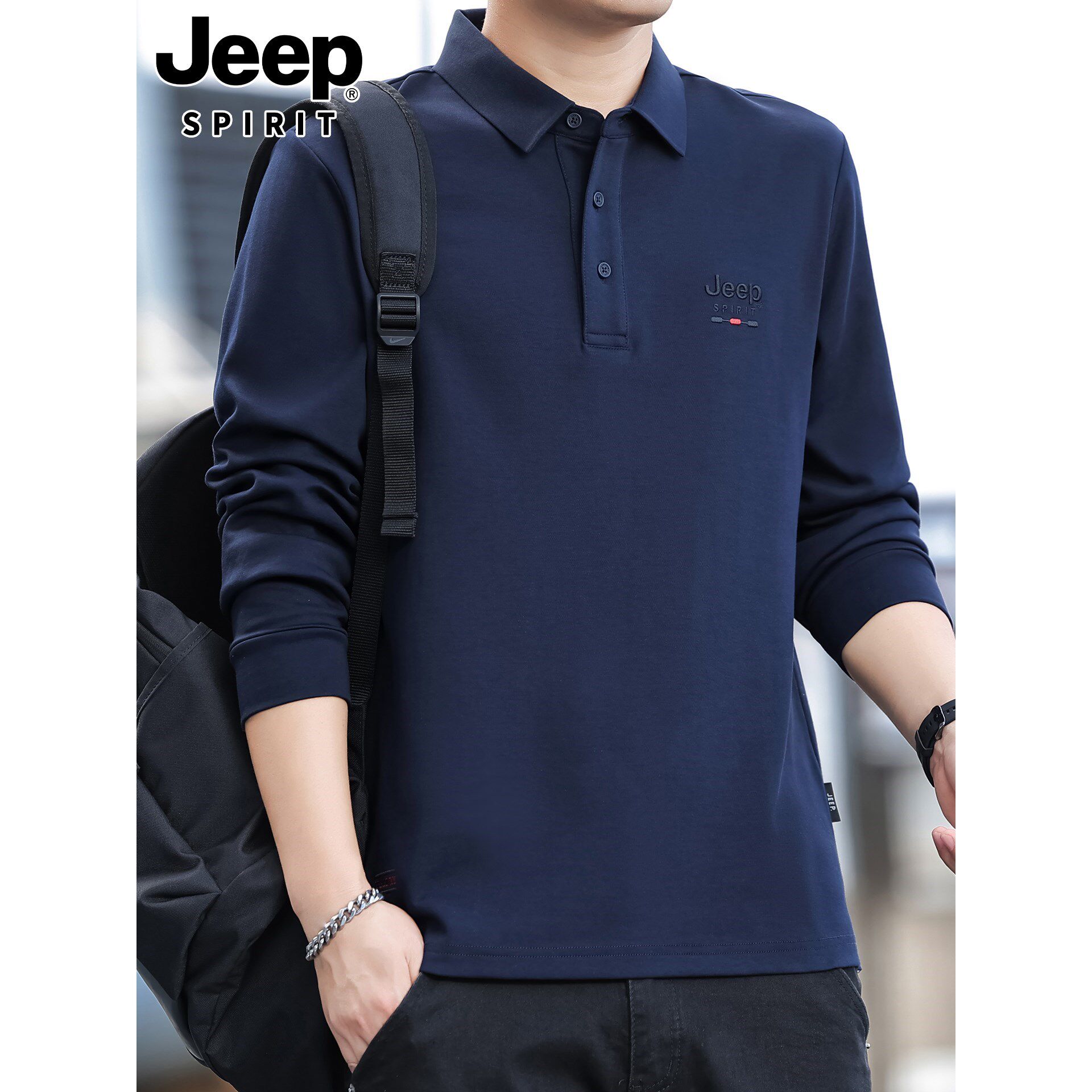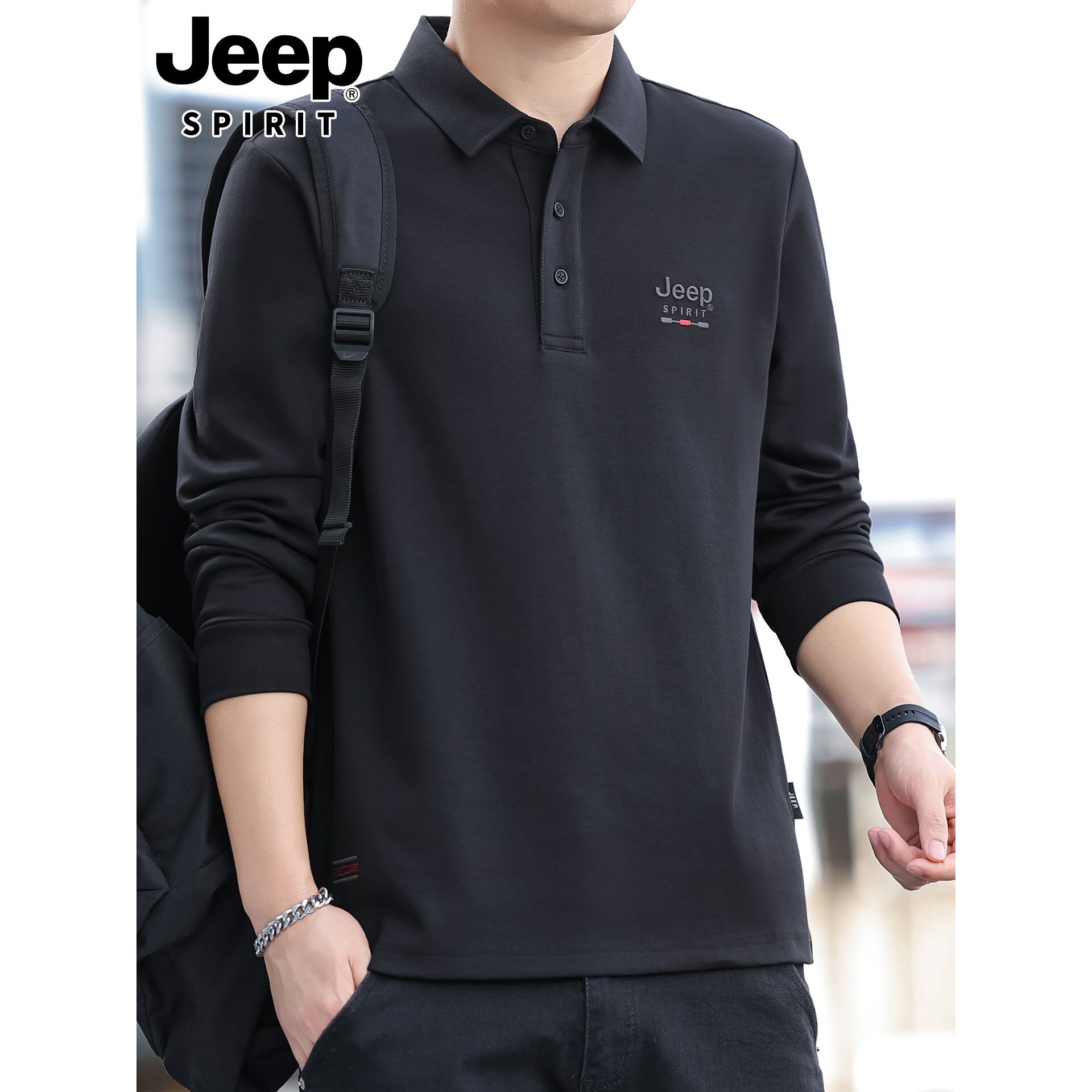 📚 吉普纯棉男士长袖T恤2026春秋款商务休闲宽松大码POLO衫爸爸上衣
