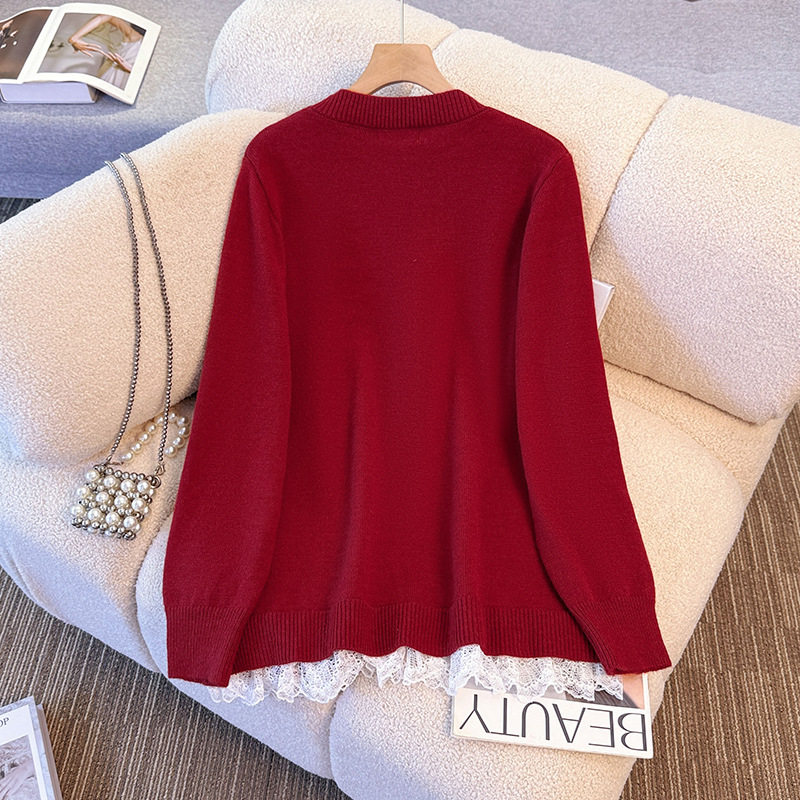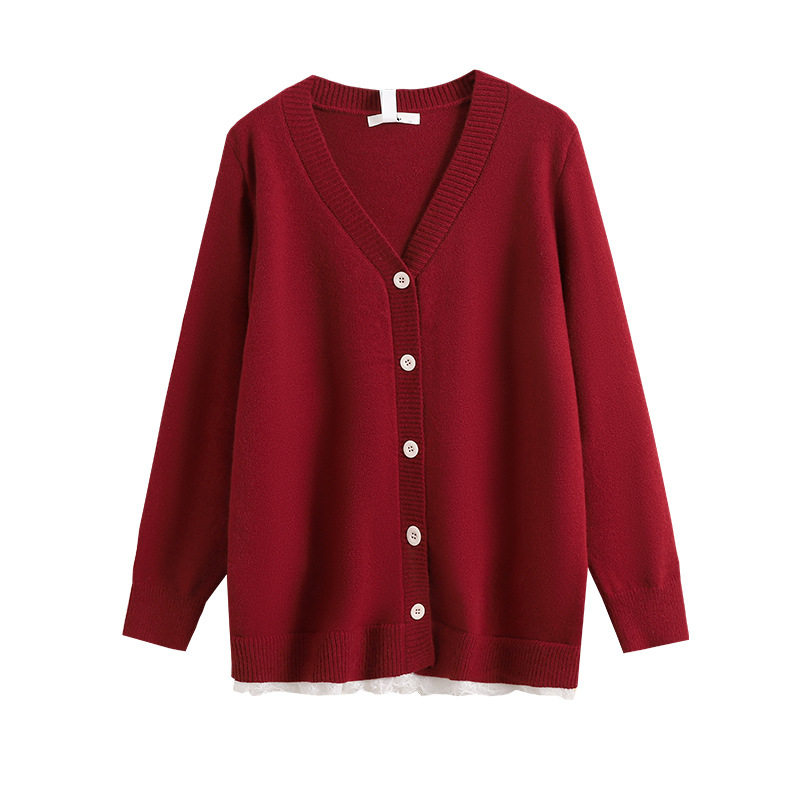 📚 200斤冬季红色开衫毛衣女特大码300胖mm宽松百搭慵懒风针织衫上衣