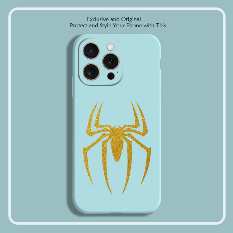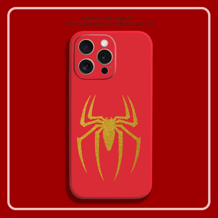 📚 蜘蛛侠金色标志动漫周边8色液态硅胶12手机壳11适用14MAX苹果15 16 PRO红米K70一加VIVO小米13挂绳IQOO12华