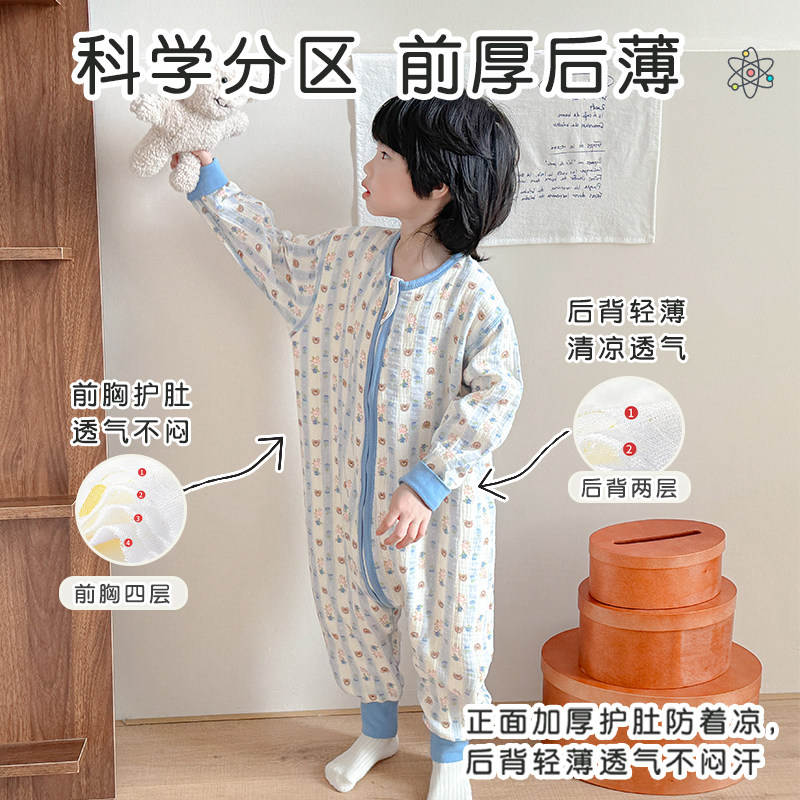 📚 儿童睡袋纯棉纱布夏季宝宝夏天空调被子女童连体睡衣女孩春夏女宝