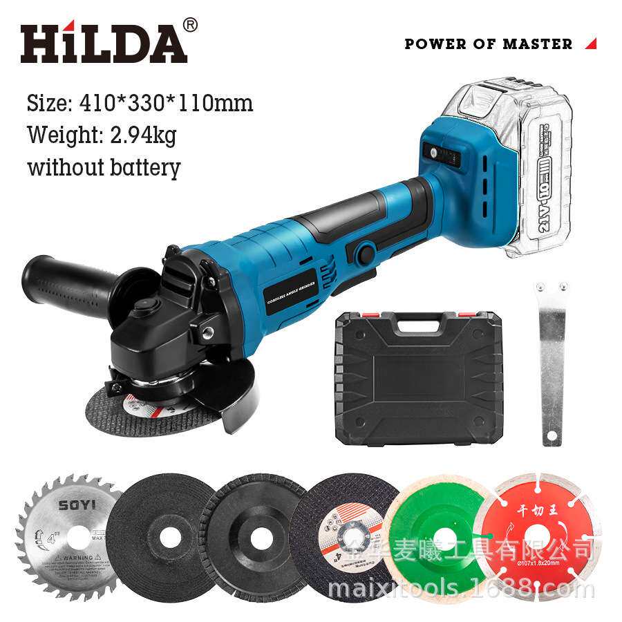📚 HILDA希尔达角磨机打磨机家用角磨机锂电切割机21v无刷大角磨机