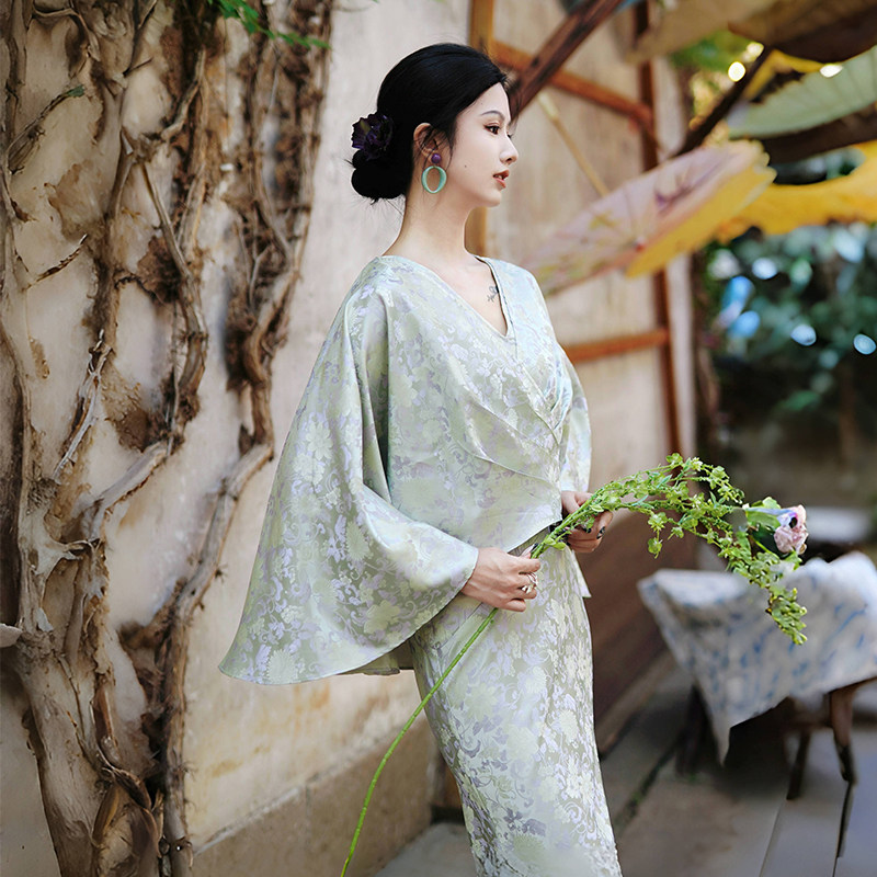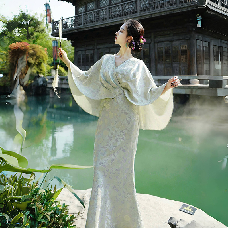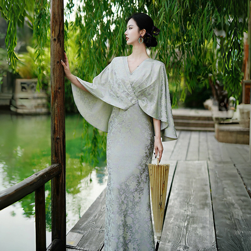 📚 澄渔高定【声声蔓】新中式塔尖级籽花绣云绫锦斗篷式显瘦连衣裙