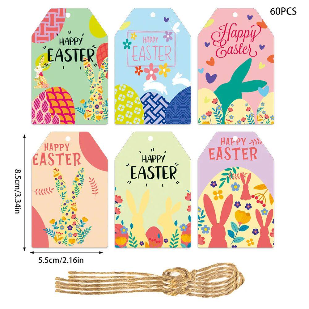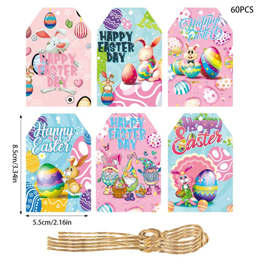 📚 60pcs Happy Easer Gif Tag Bunny Rabbi Easer Egg Paper Tag Ca