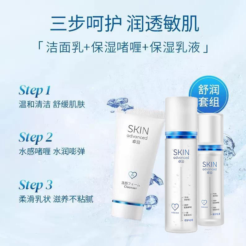 📚 屈臣氏 卓沿白金舒润舒缓敏感肌套装洁面乳保湿乳液啫喱三件套