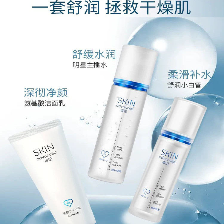 屈臣氏 卓沿白金舒润舒缓敏感肌套装洁面乳保湿乳液啫喱三件套