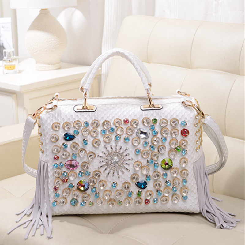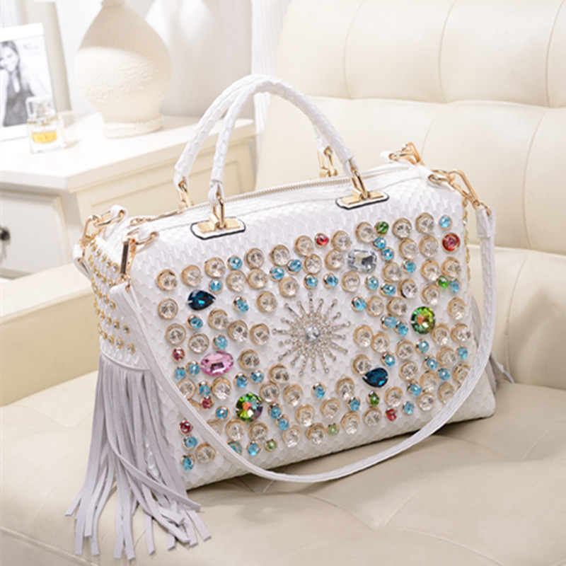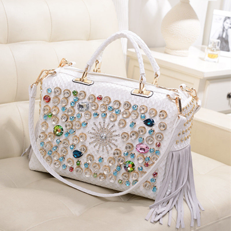 📚 欧美大牌2026新款高级感真皮流苏手提包水钻大容量休闲单肩斜挎女