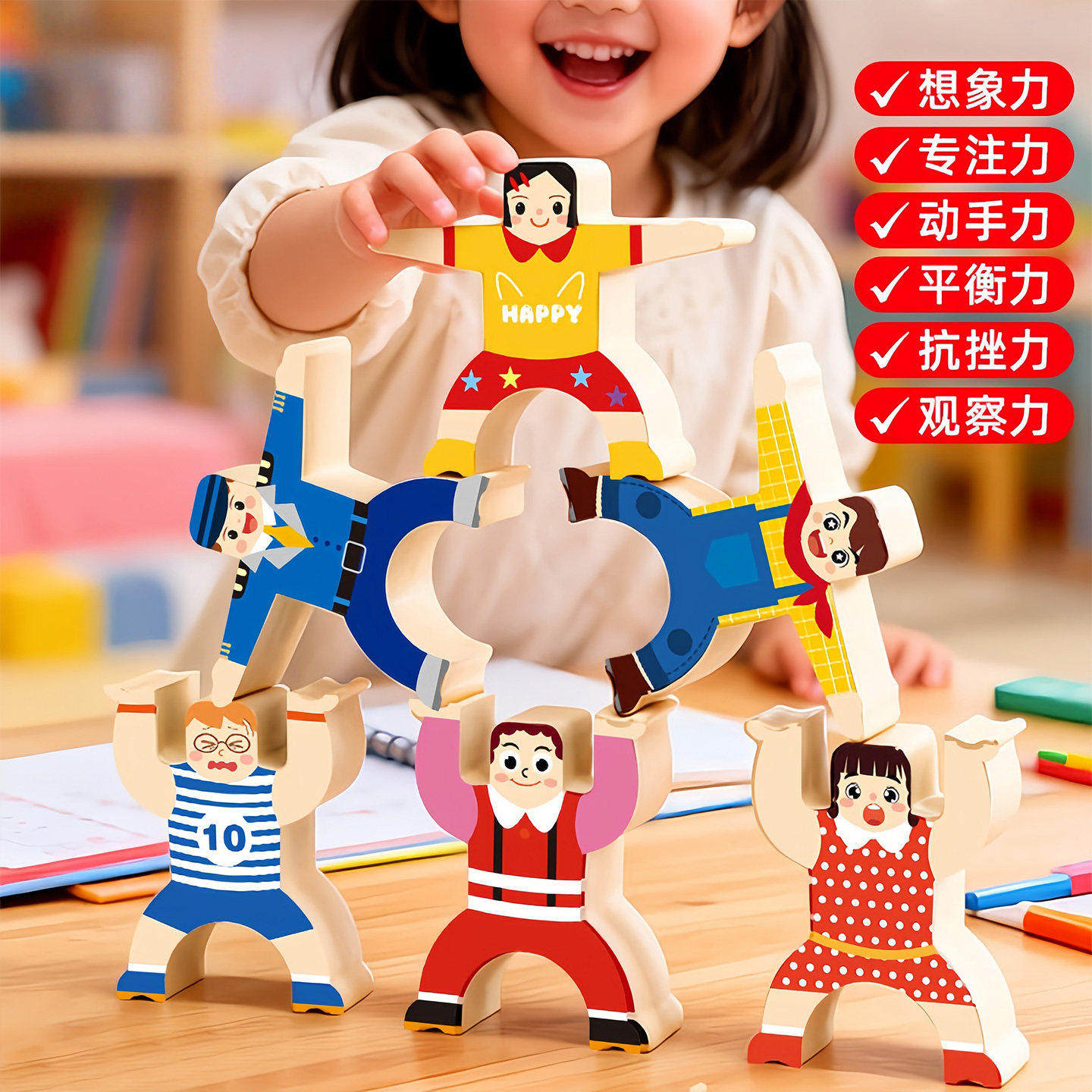 📚 儿童大力士叠叠乐积木层层叠罗汉平衡堆高宝宝益智玩具木质小人偶