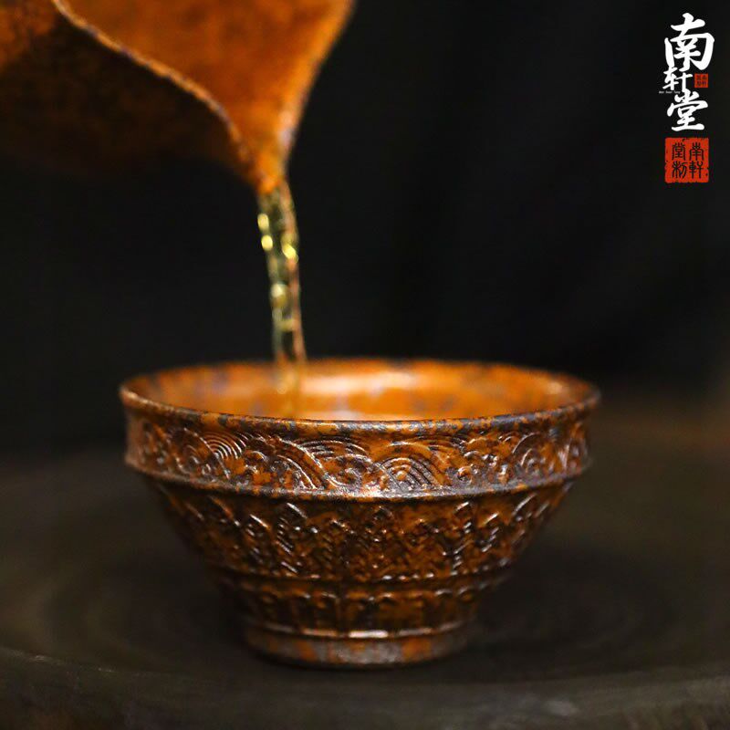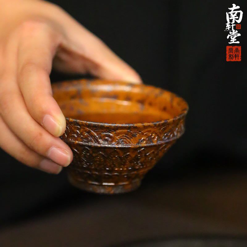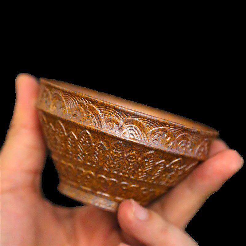 📚 紫砂还原烧窑茶杯浮雕海浪纹斗笠杯主人单杯陶瓷中式功夫茶具