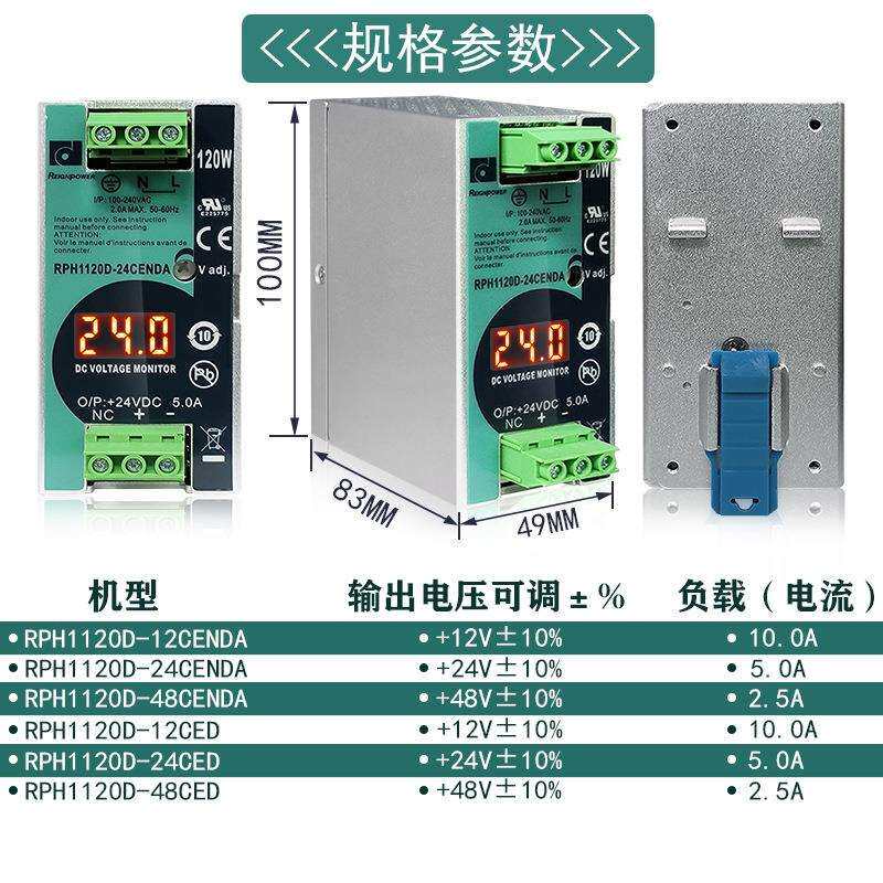 📚 昂鼎Reignpower 120W12V24V48V数显工业导轨开关电源PFC直流电源