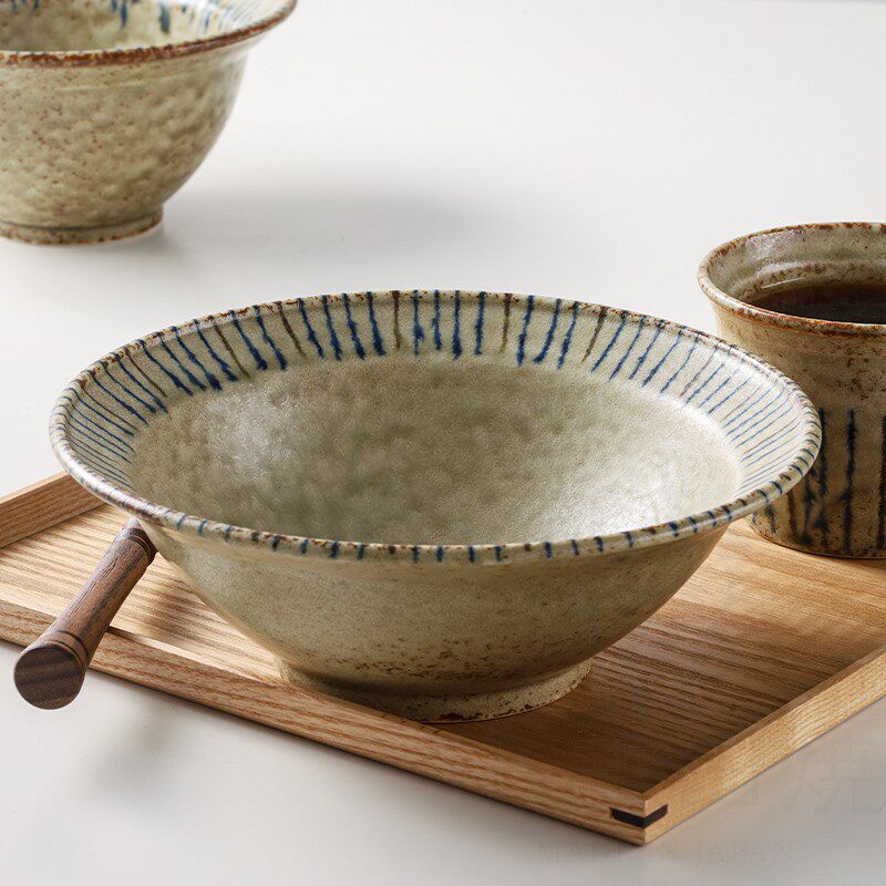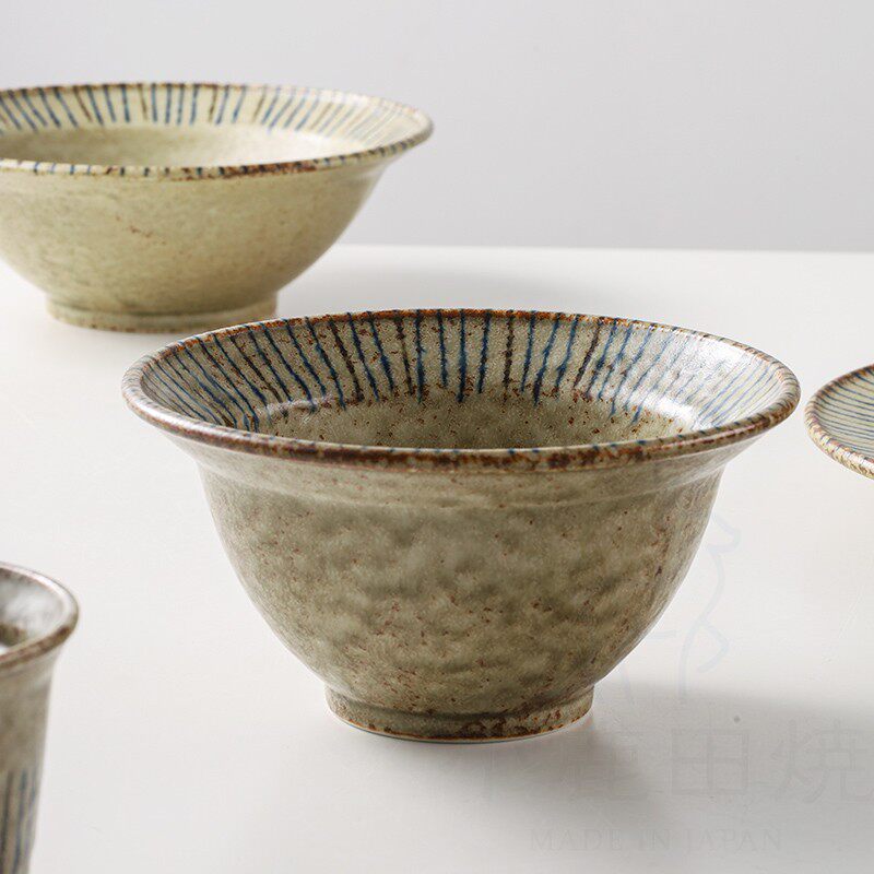 📚 小鹿田烧日本进口复古日式十草纹冰裂釉米饭碗面碗汤碗盘子釉下彩
