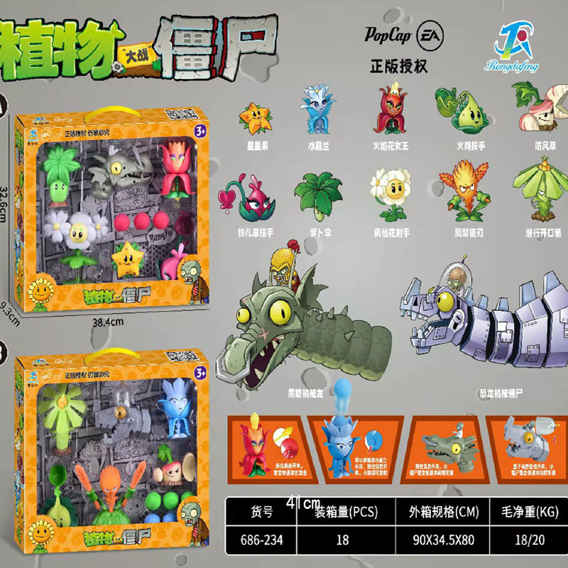 📚 正版植物大战僵尸玩具小丑僵尸蹦极僵尸豌豆藤蔓水晶兰儿童男孩