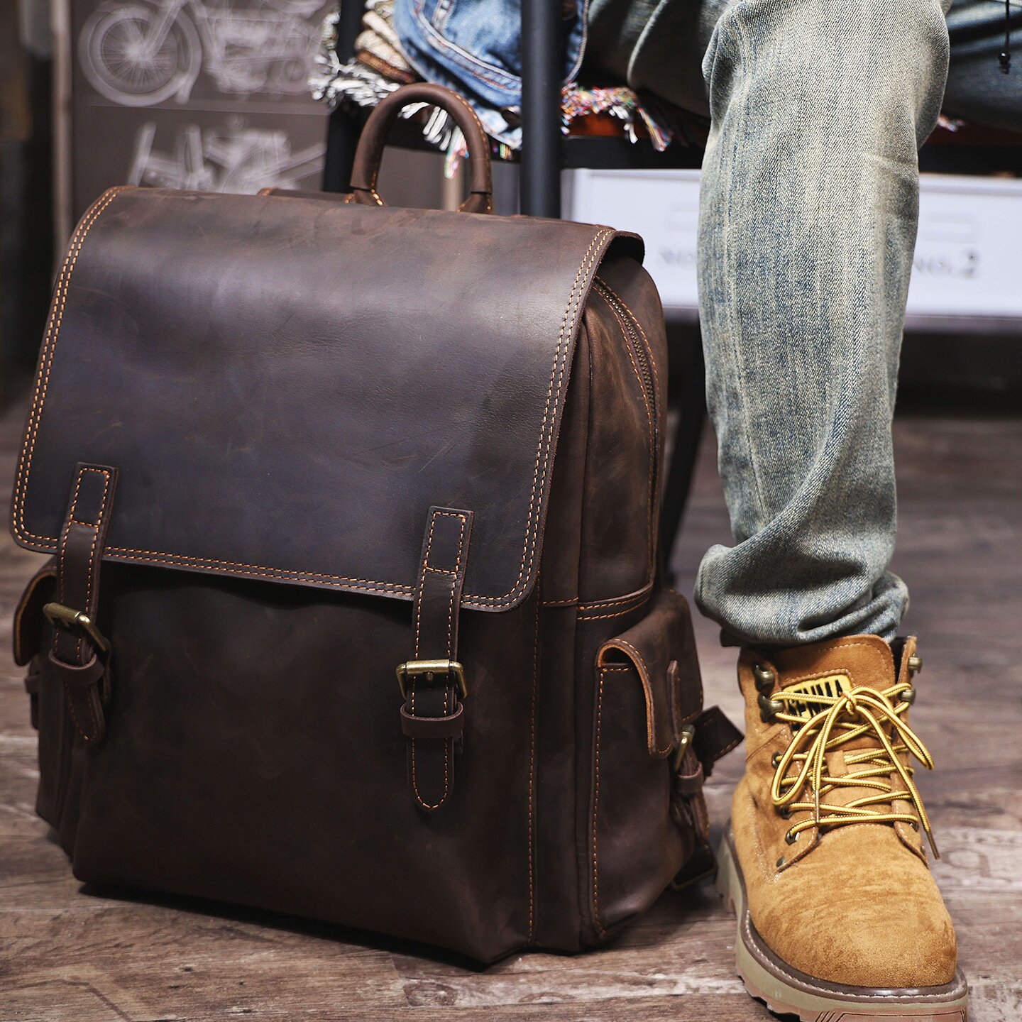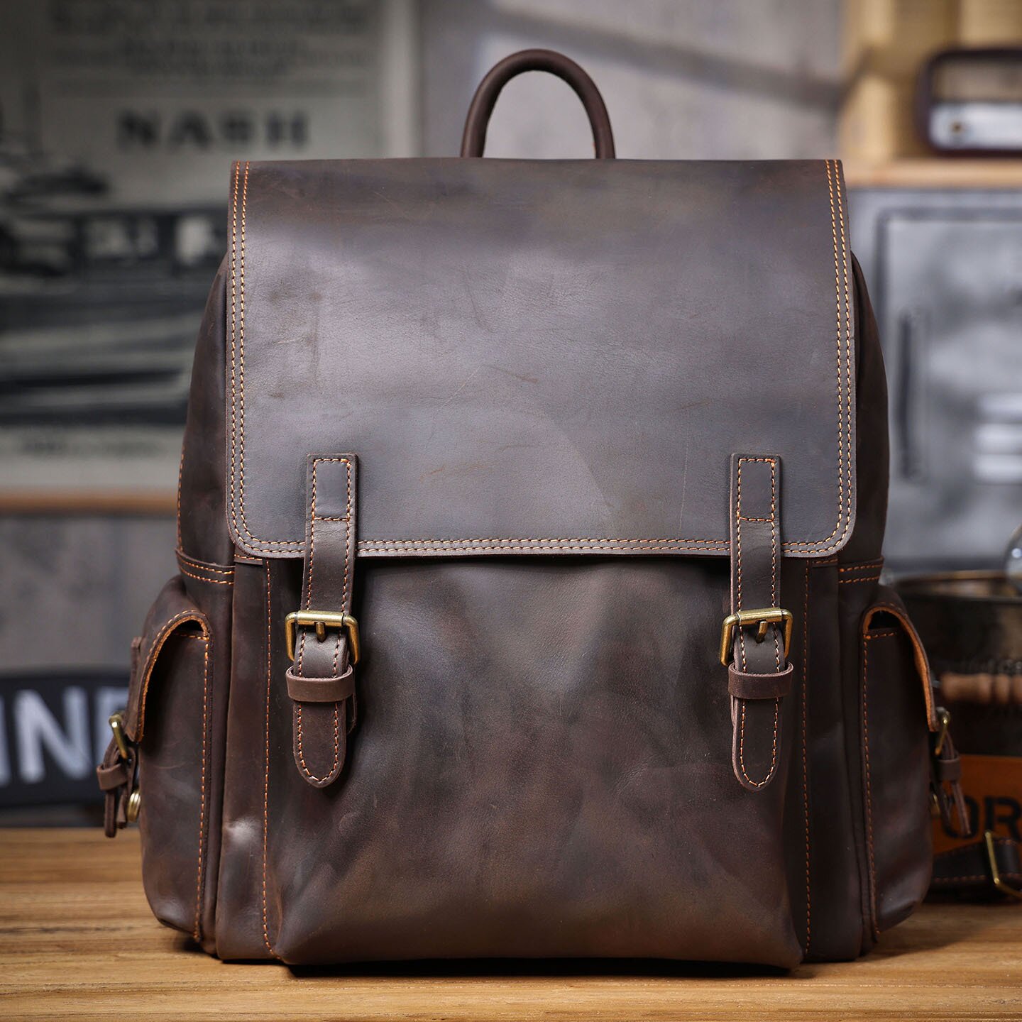 📚 2025秋冬复古大容量头层牛皮双肩包疯马皮背包真皮手工旅行