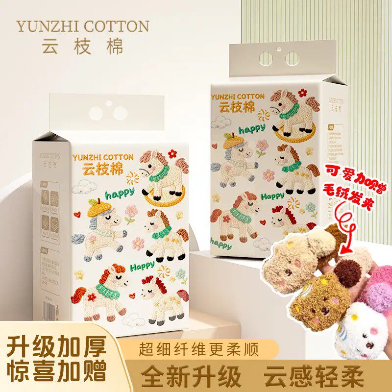 📚 云枝棉洗脸巾加赠精品毛绒发夹珍珠纹特厚款卸妆干湿两用悬挂底抽