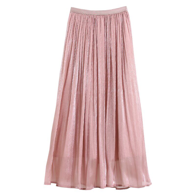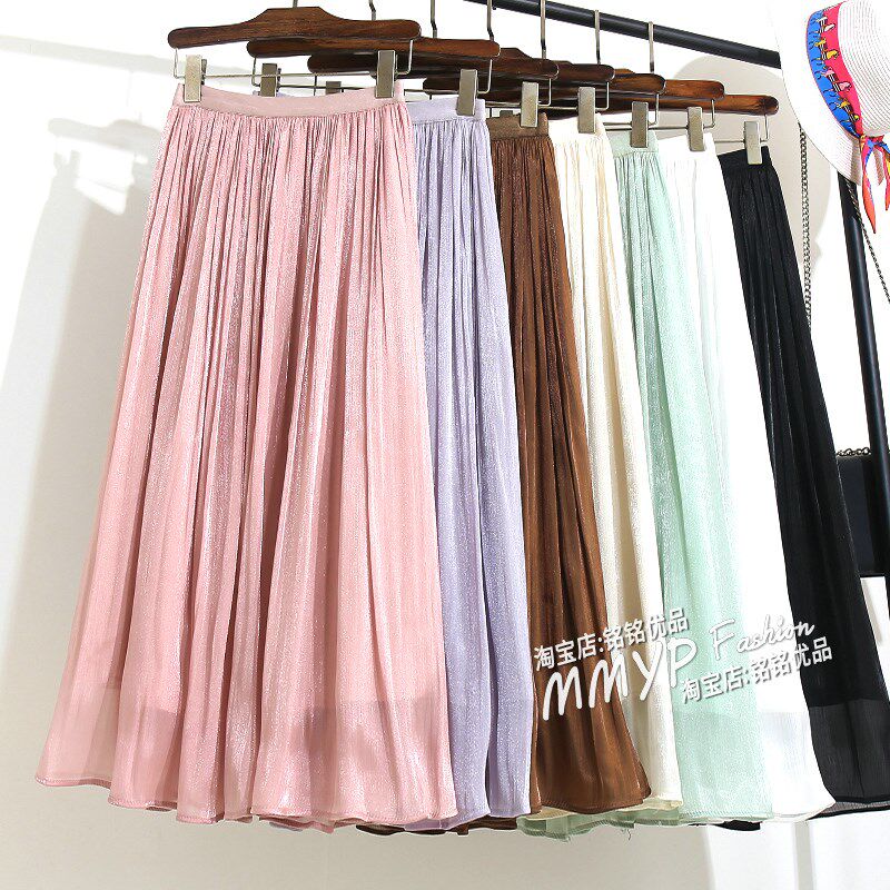 📚 垂感粉色流光纱百褶裙半身裙女夏季2025新款珠光裙子纱裙半裙长裙