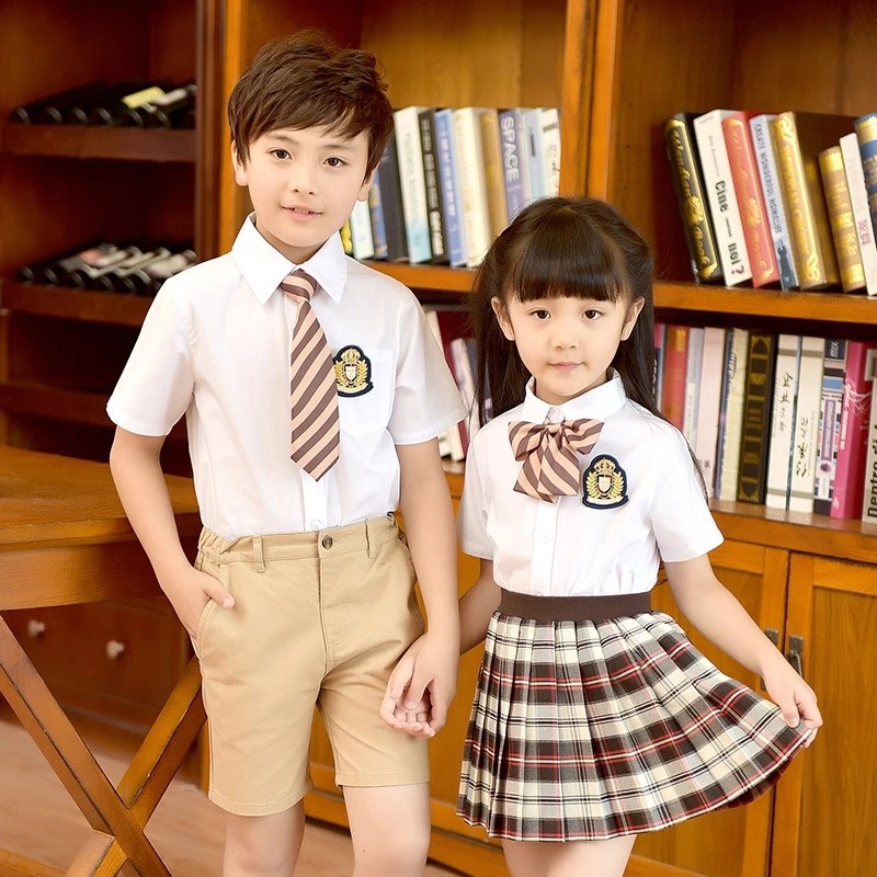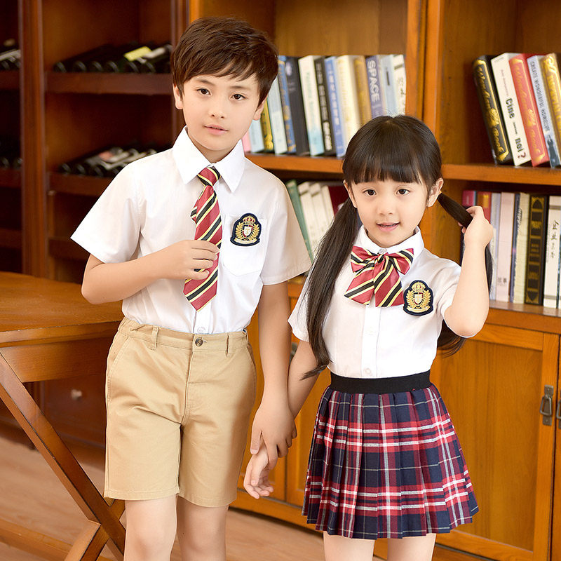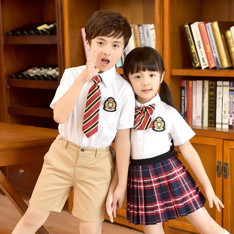 📚 幼儿园园服夏季短袖男女童装儿童白衬衫一年级小学生班服校服套装