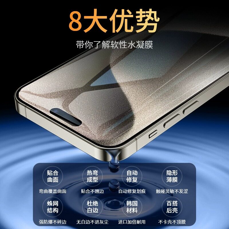 📚 适用苹果15promax防窥水凝膜iphone14plus自动修复13pro手机膜12防指纹抗蓝光苹果11防摔防爆XR保护膜7p8plus
