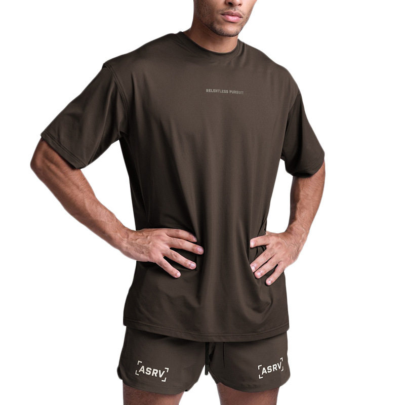 📚 ASRV男子运动短袖T恤宽松大码篮球训练服速干下摆开叉健身衣圆领