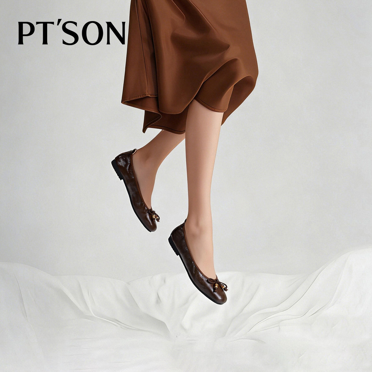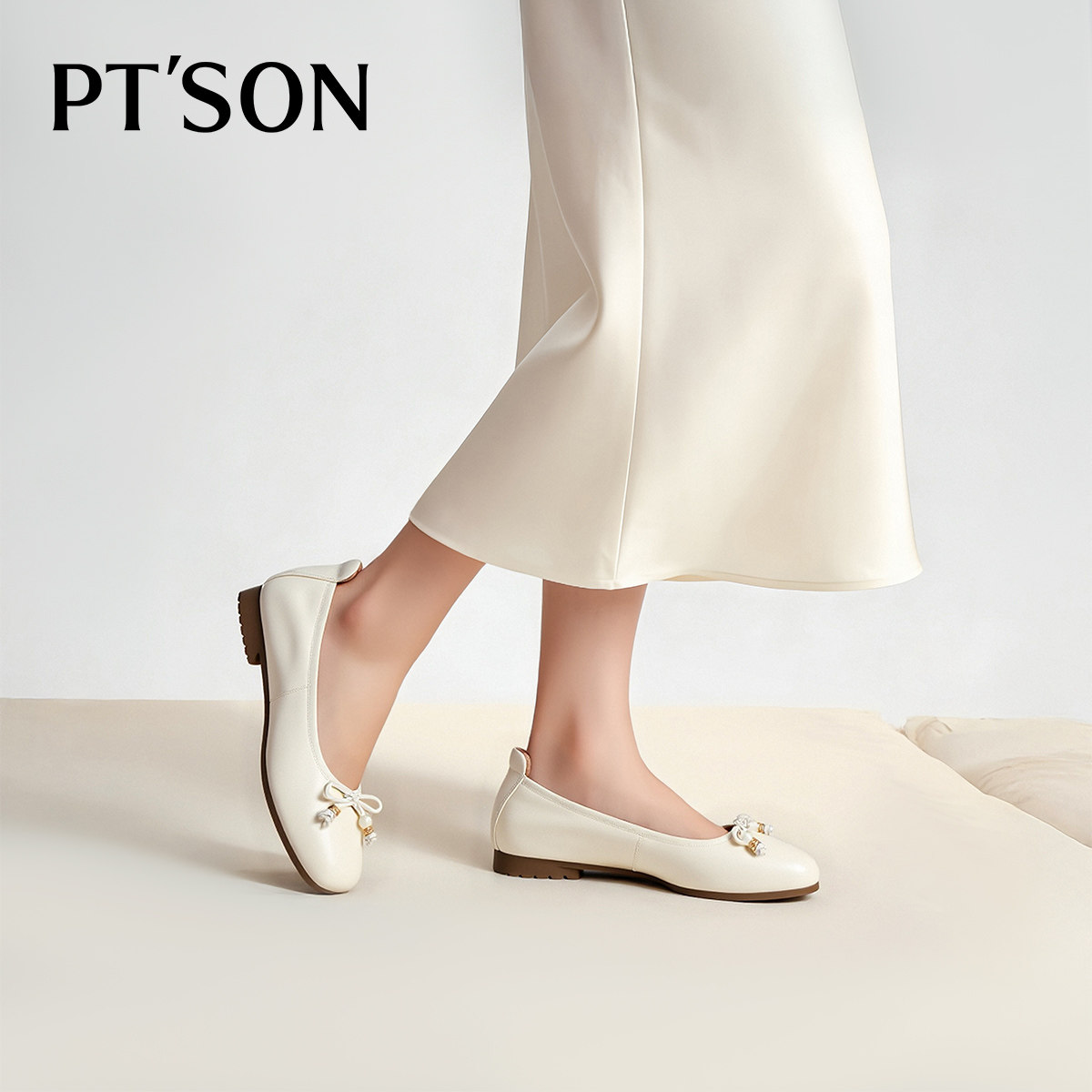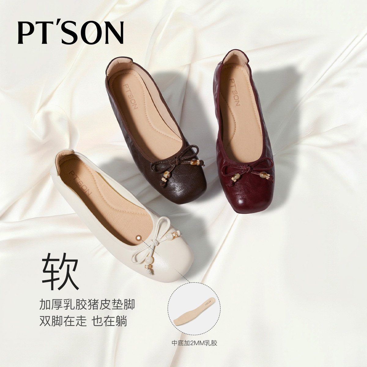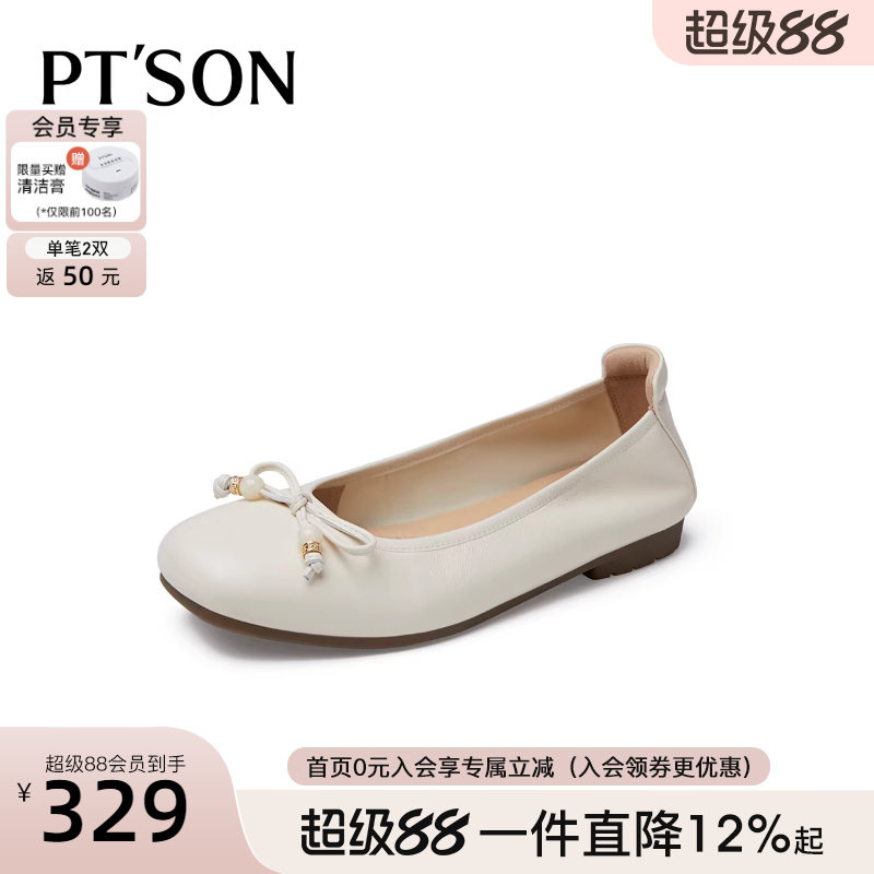 📚 百田森白色芭蕾鞋单鞋女2026新款平底鞋子配裙子超软羊皮不累脚鞋