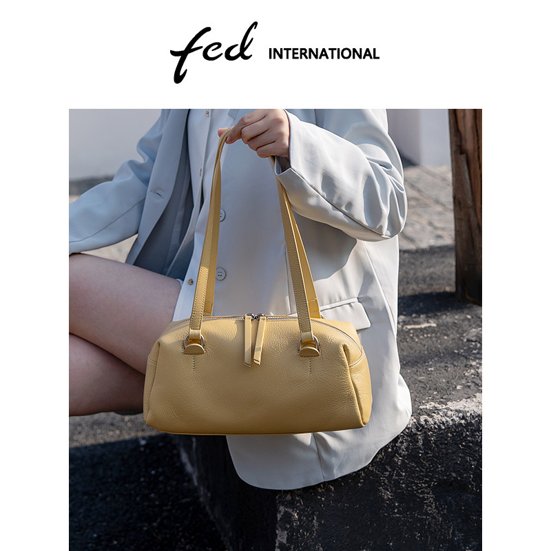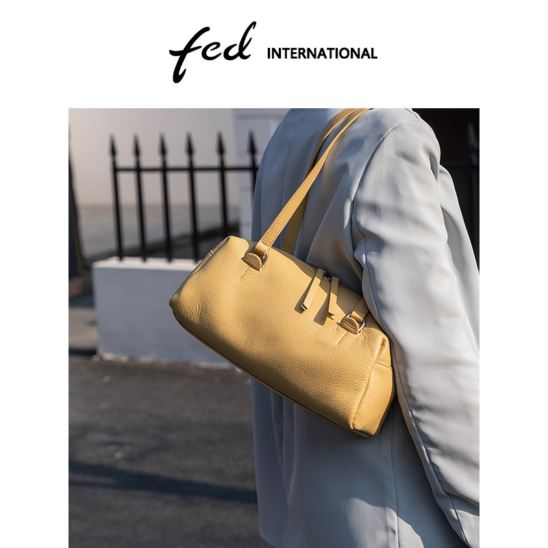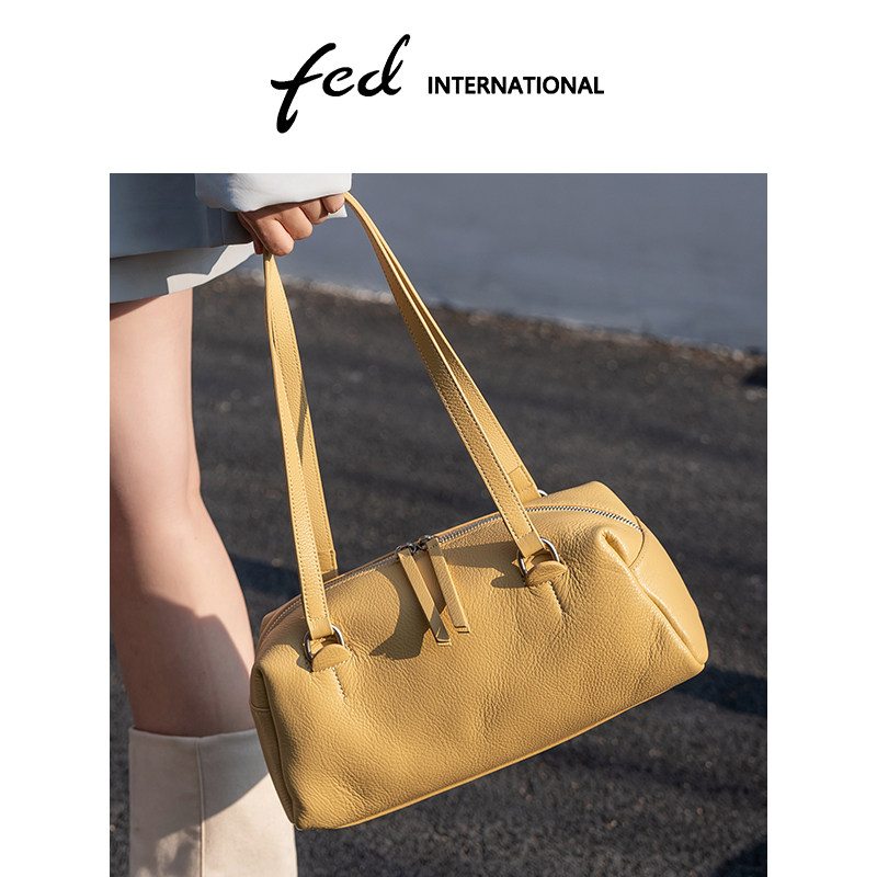 📚 fed头层牛皮波士顿包单肩手提腋下包妈咪包大容量真皮女包BFA9530