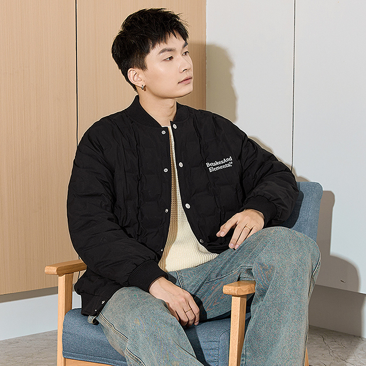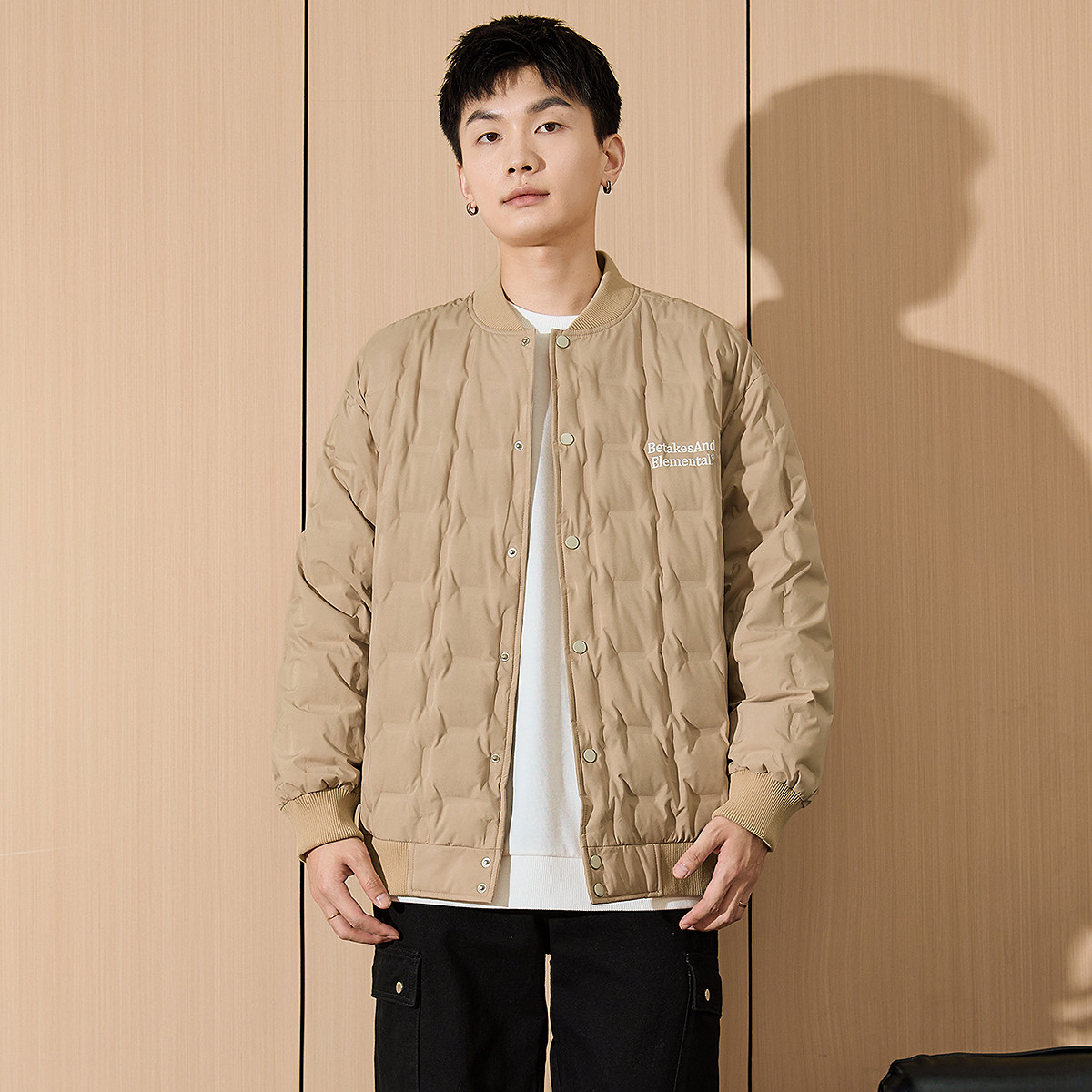 📚 唐狮冬季新款羽绒服男轻薄棒球领黑色短款夹克韩版外套上衣潮TD