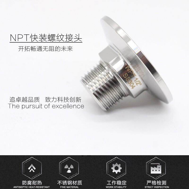 📚 SS304卫生级不锈钢快装外丝卡箍美制NPT夹头外螺纹内螺纹丝扣接头