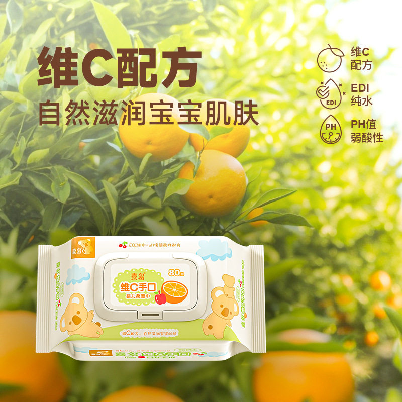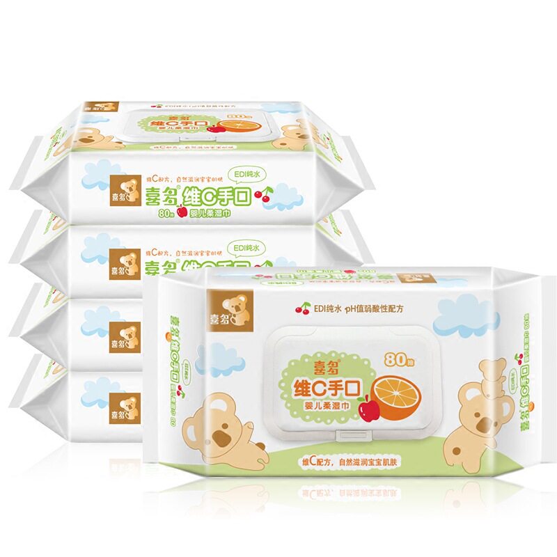 📚 喜多宝宝维c湿巾带盖手口80抽*5包婴幼新生儿柔湿巾纸5包一箱