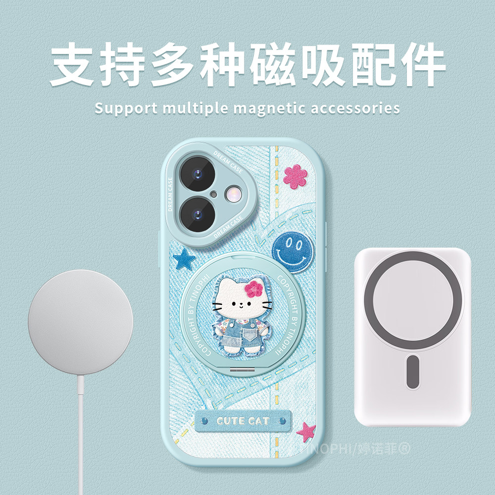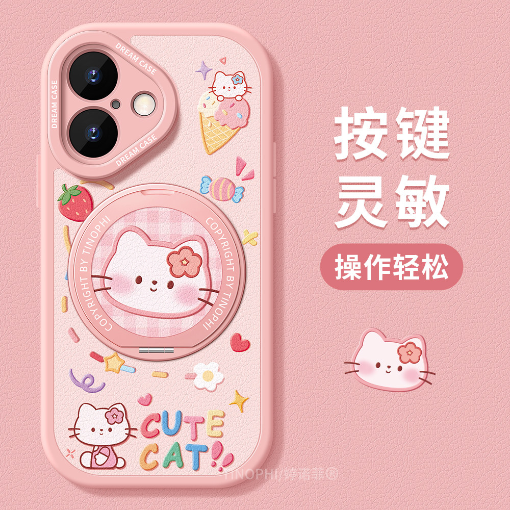 📚 适用苹果17手机壳女款iphone16保护套pro全包magsafe磁吸带支架15plus硅胶14promax防摔air磨砂复古小猫外壳