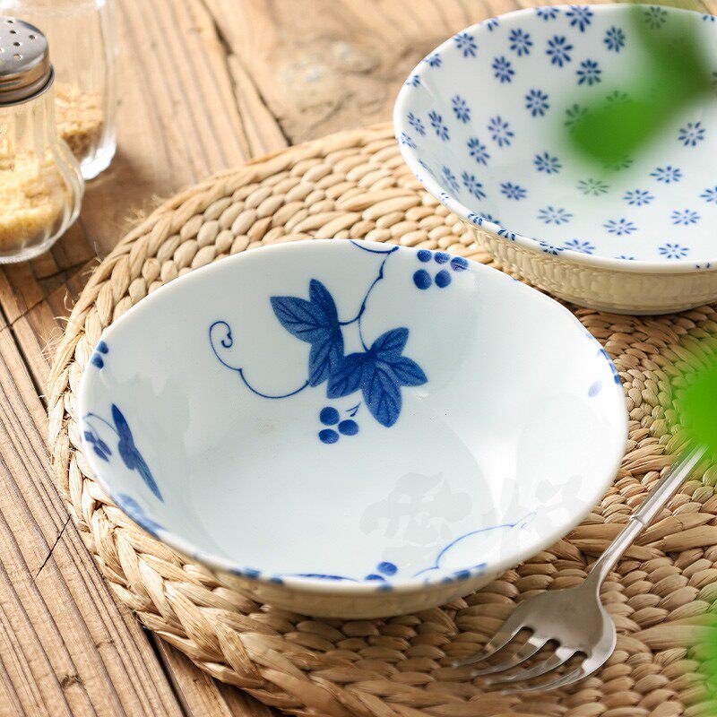 📚 日本制进口陶瓷日式餐具釉下彩青花深盘菜盘家用盘子深盘小钵盘子
