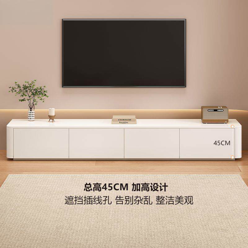 📚 奶油风实木电视柜岩板设计落地高45CM电视柜组合全E0级环保