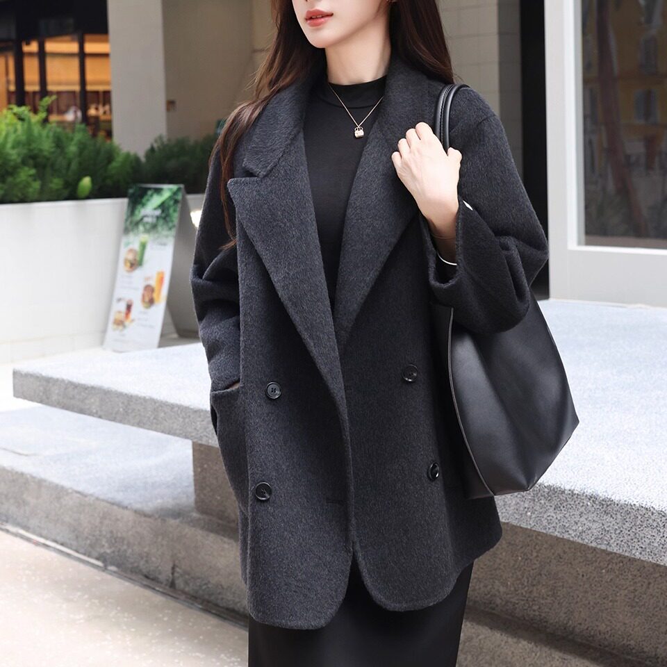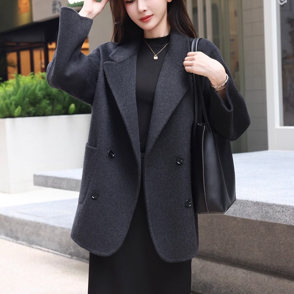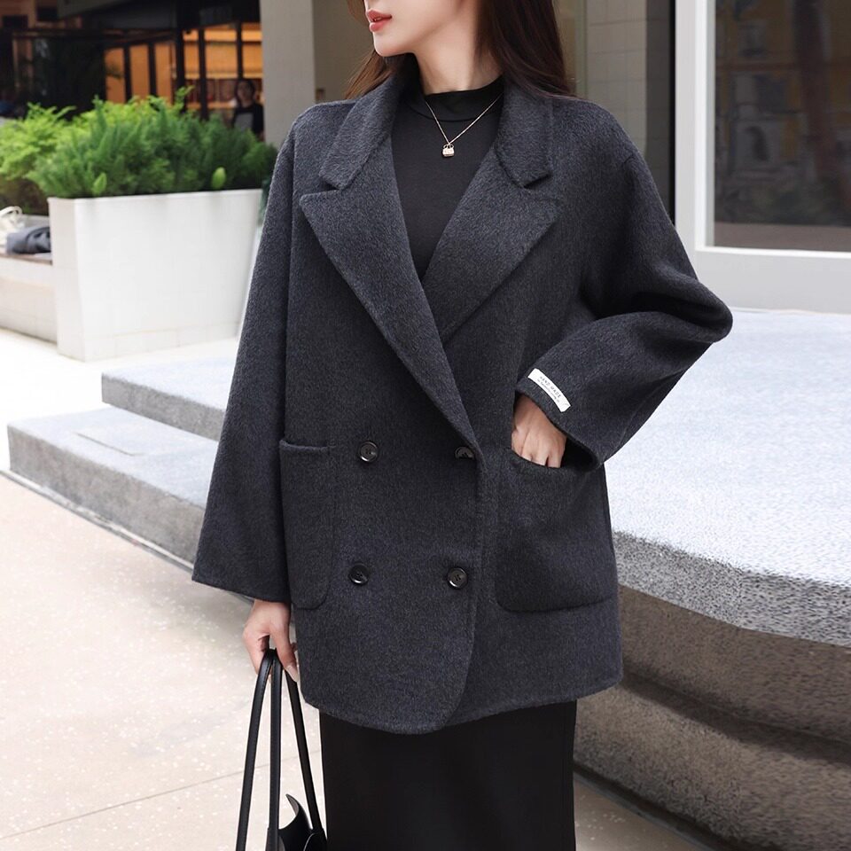 📚 2025秋冬新款小个子双面羊绒羊毛大衣女士短款黑色宽松毛呢外套