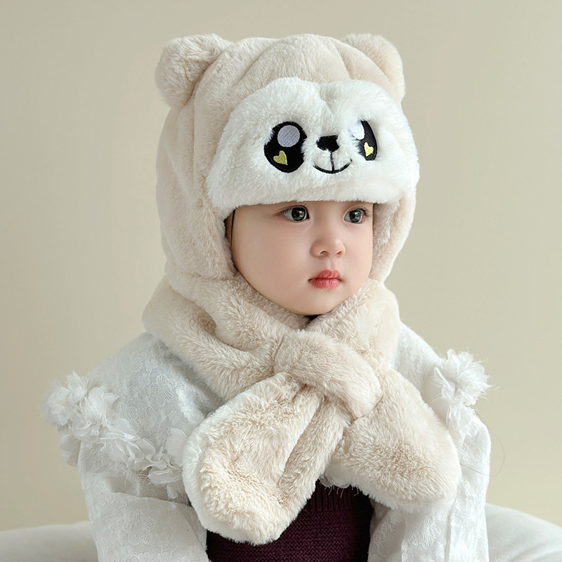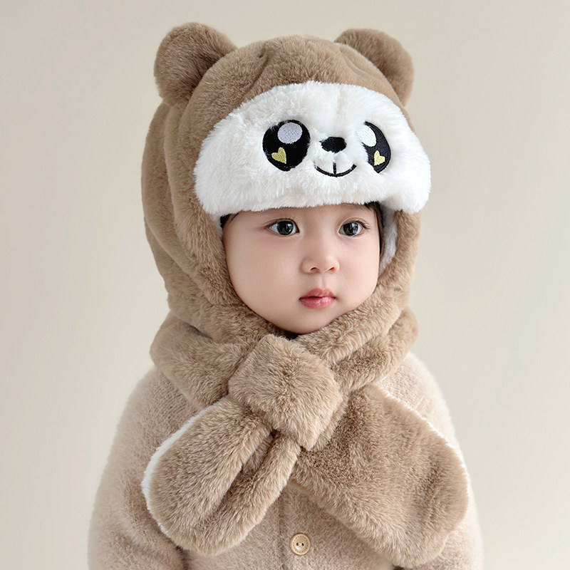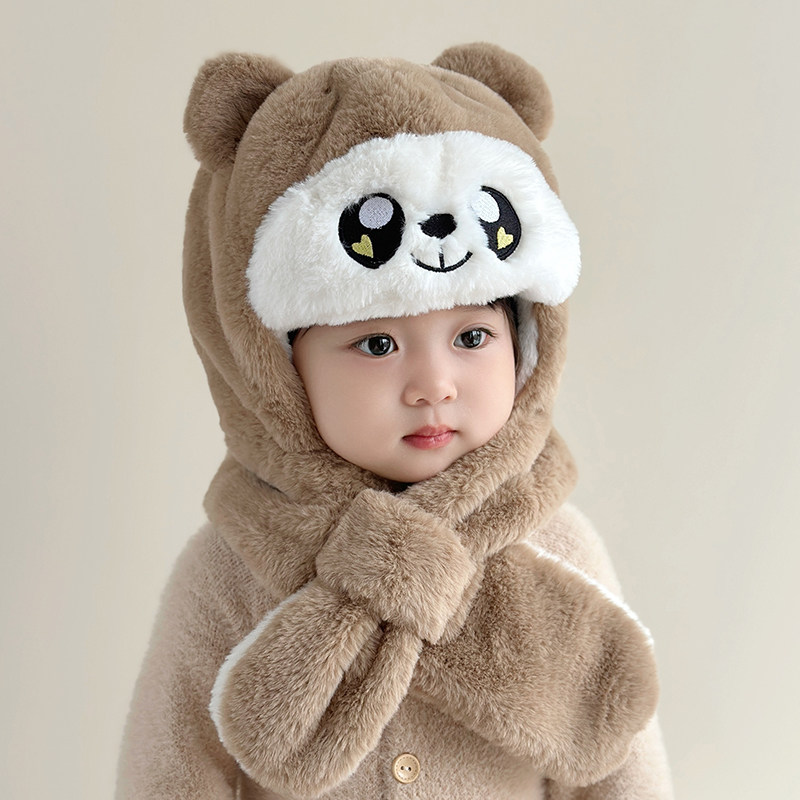 📚 宝宝帽子秋冬季男童女孩儿童围巾一体护耳帽婴幼儿围脖2024新款潮