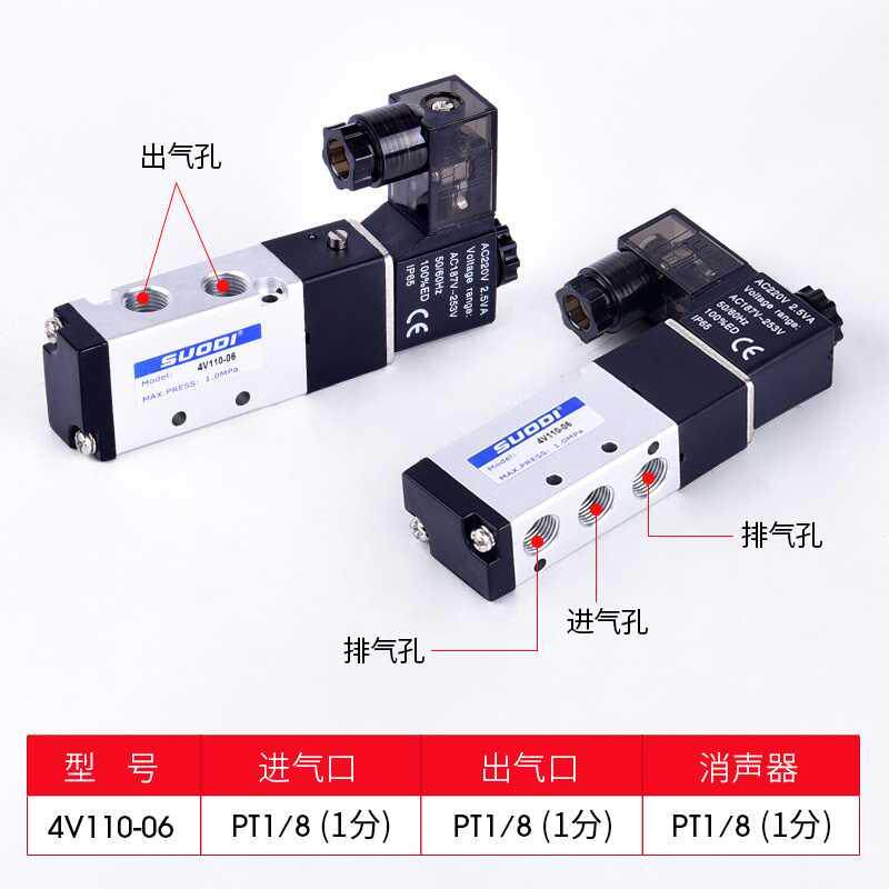 📚 现货二位五通电磁阀气阀4V110-06/DC12V24V/AC220V1分气口带灯入