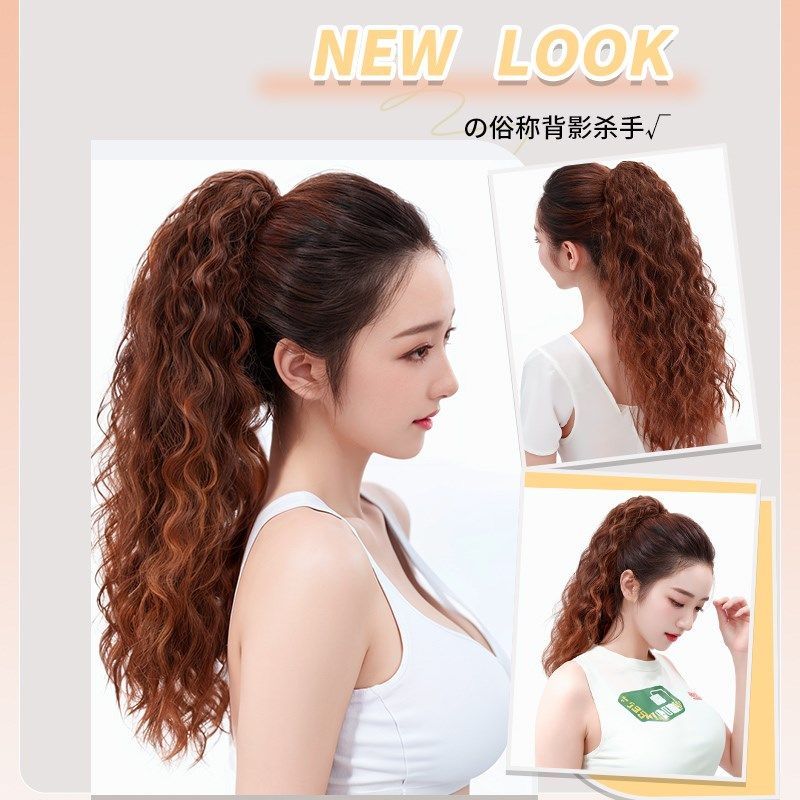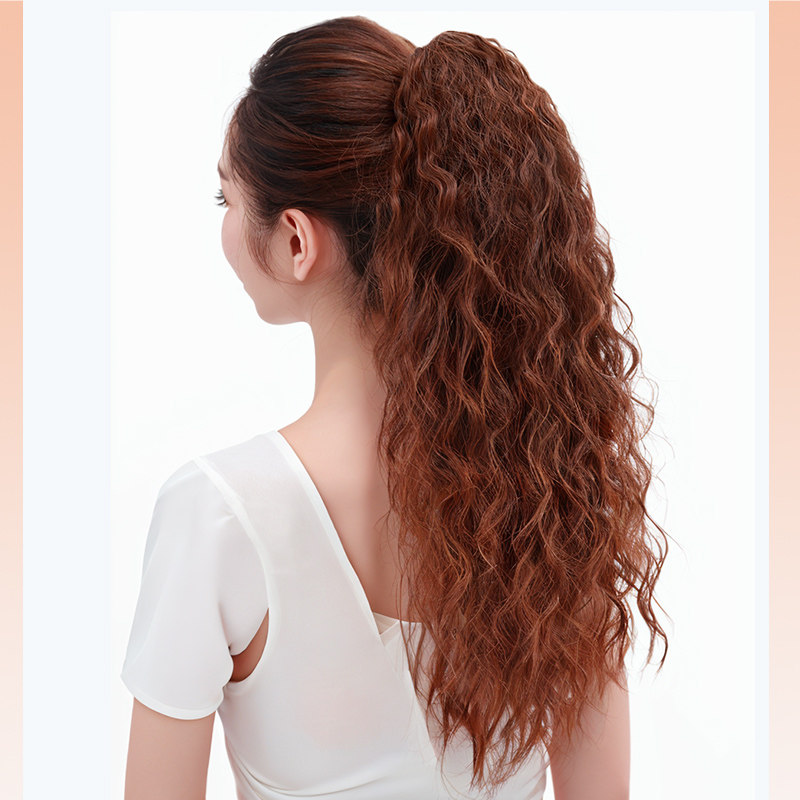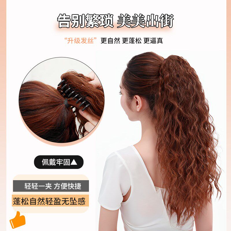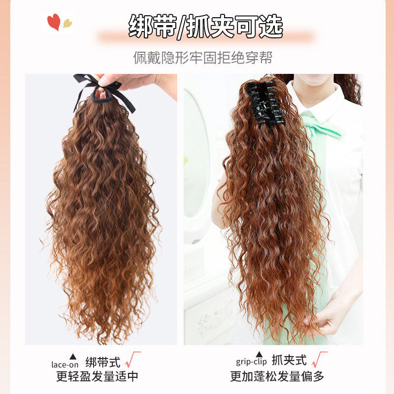 📚 马尾假发女长卷发玉米烫绑带式高马尾长发羊毛抓夹发片波浪梨花卷
