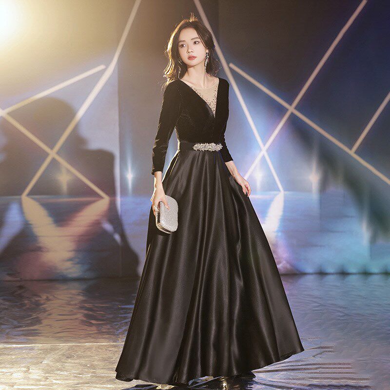 📚 法式晚礼服女2023新款宴会气质大气黑色连衣裙主持人艺考礼服