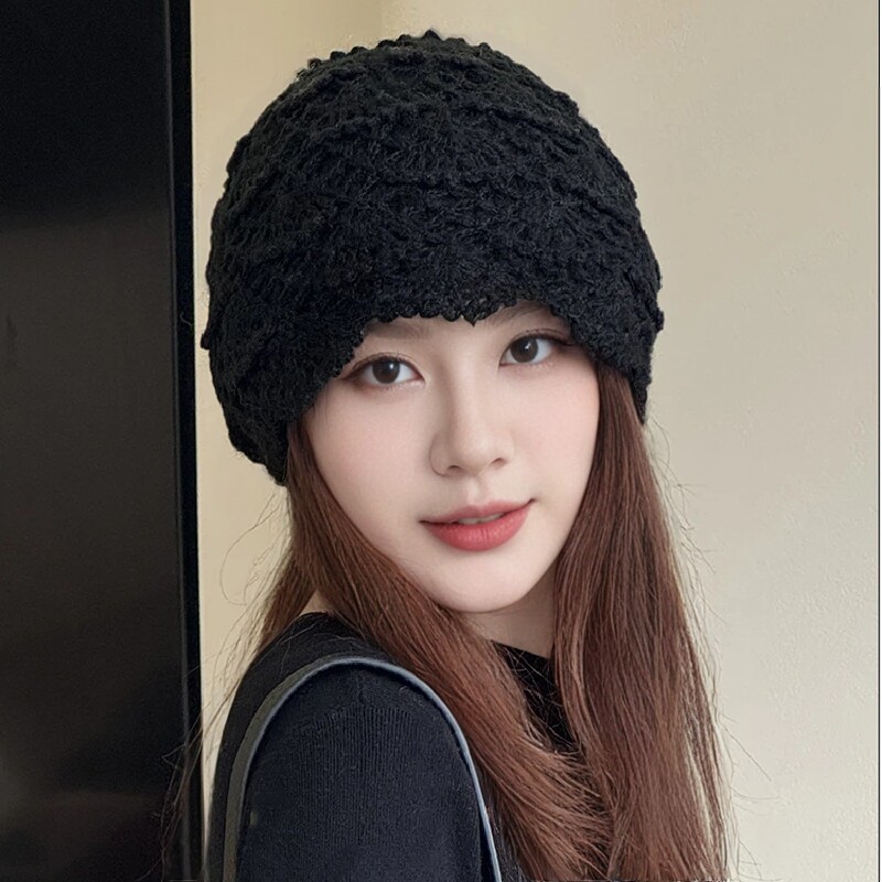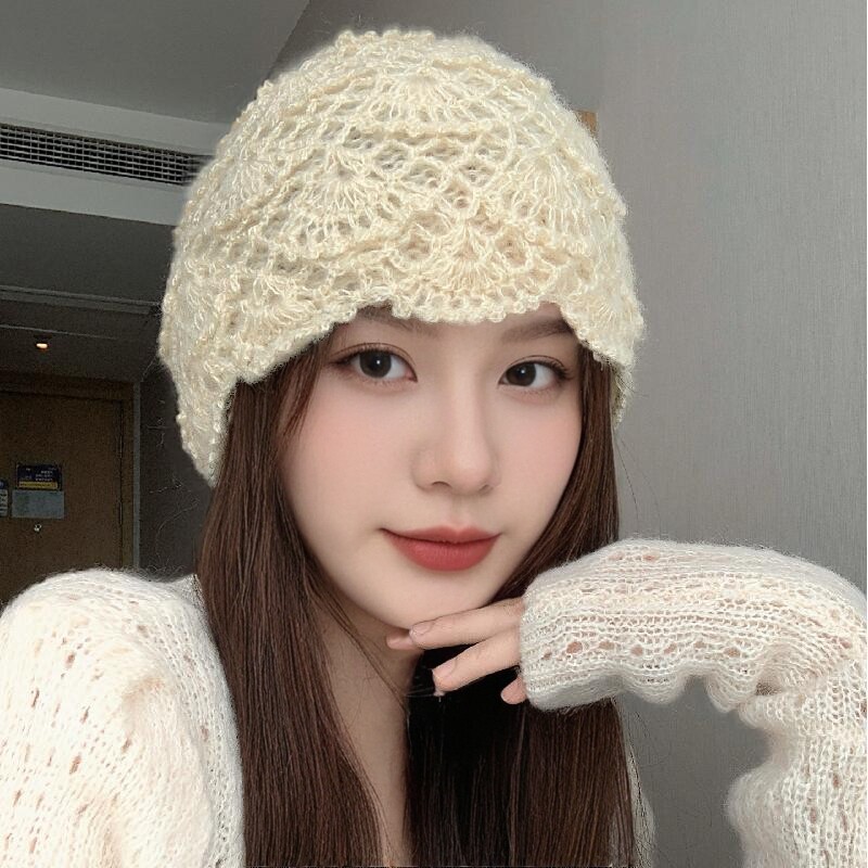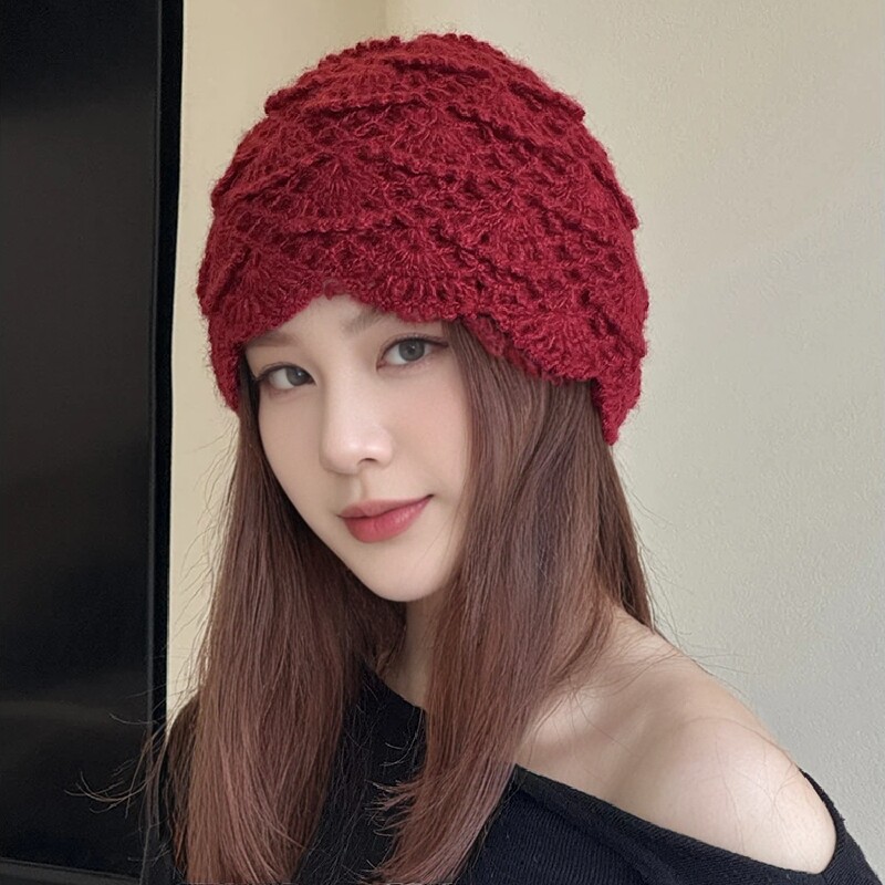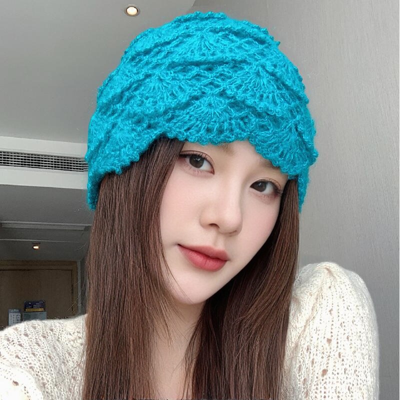 📚 日系甜美百搭镂空花朵包头帽女秋冬文艺复古时尚手工钩花针织帽子