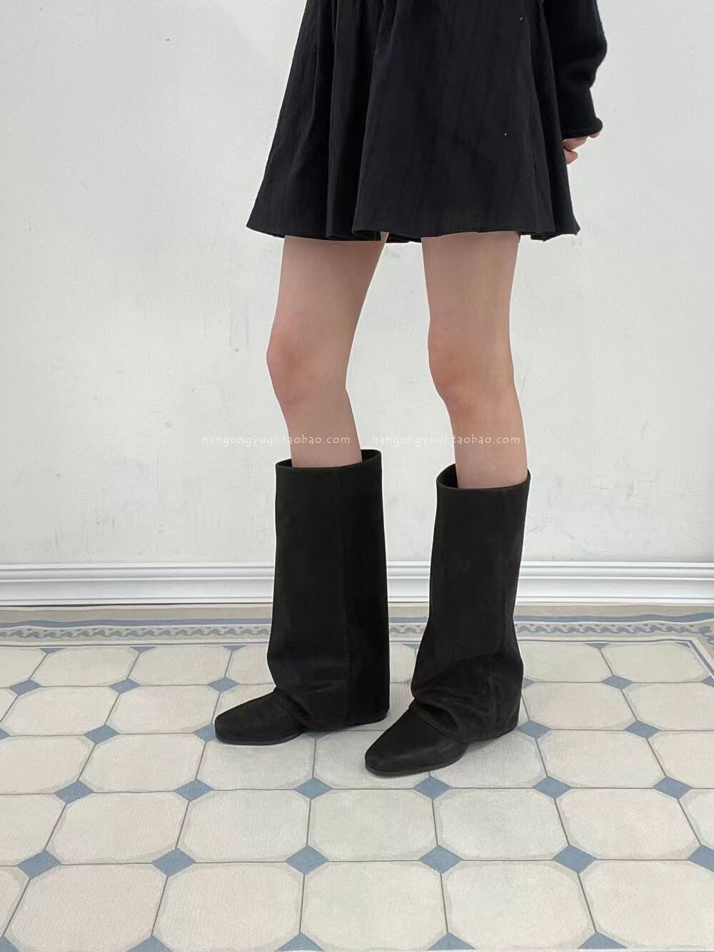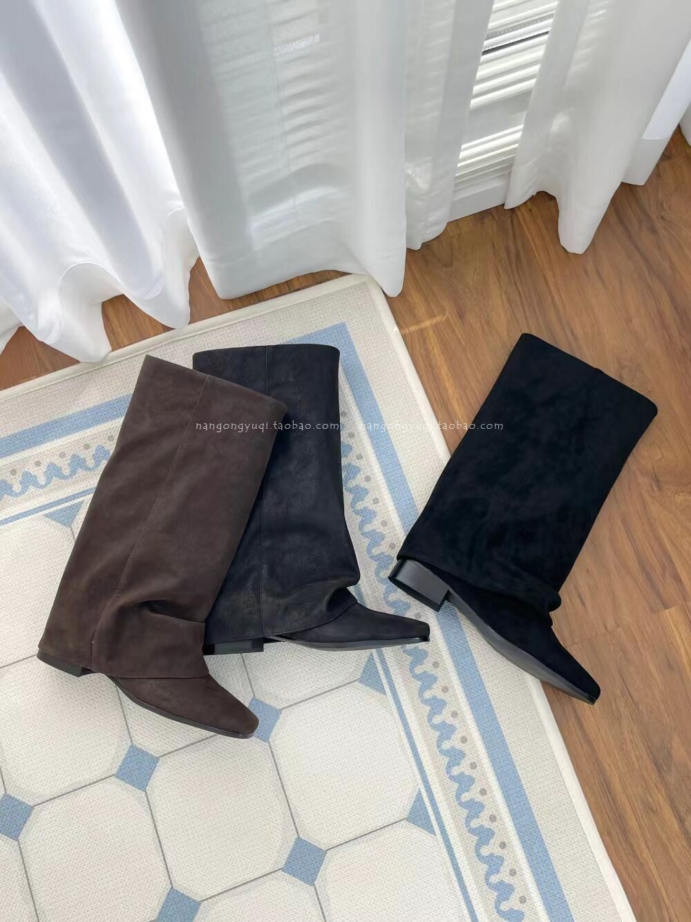 📚 韩国东大门代购24秋新款ins欧美时髦低跟作旧裤筒靴宽筒高筒靴子