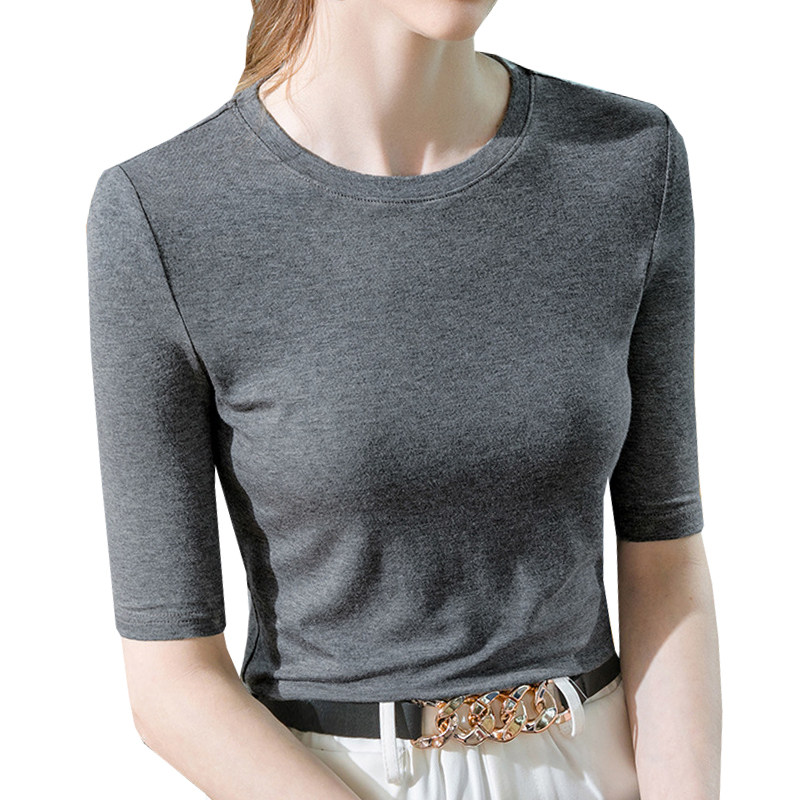 📚 百搭基础款小圆领打底衫半袖纯色内搭薄款小衫女中袖t恤2025秋装