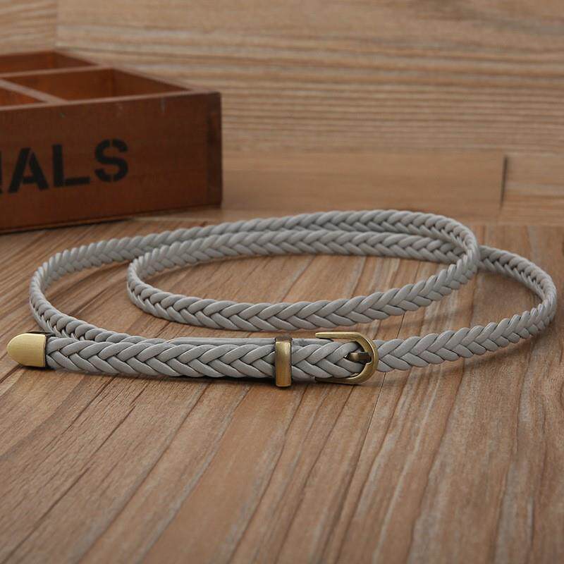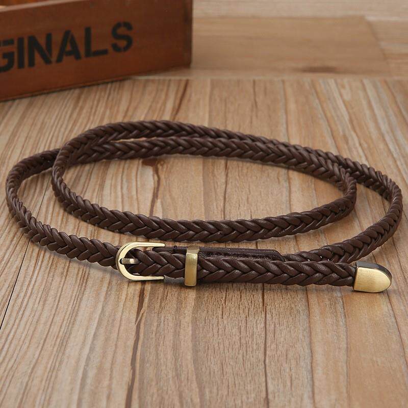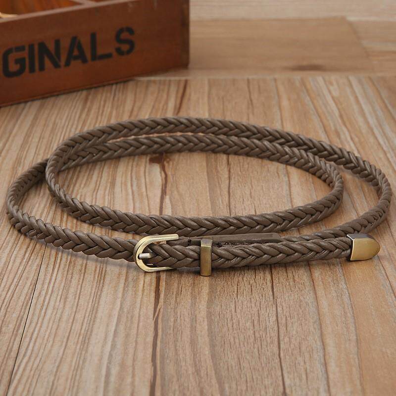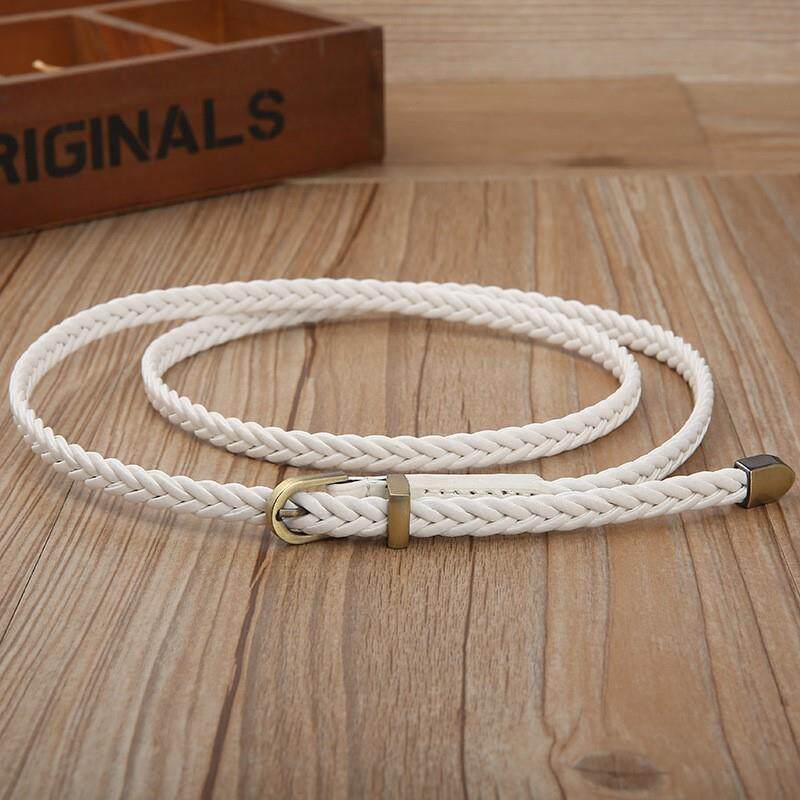 📚 米色细腰带休闲韩版百搭小皮带女细长衬衫连衣裙装饰绳子编织腰带